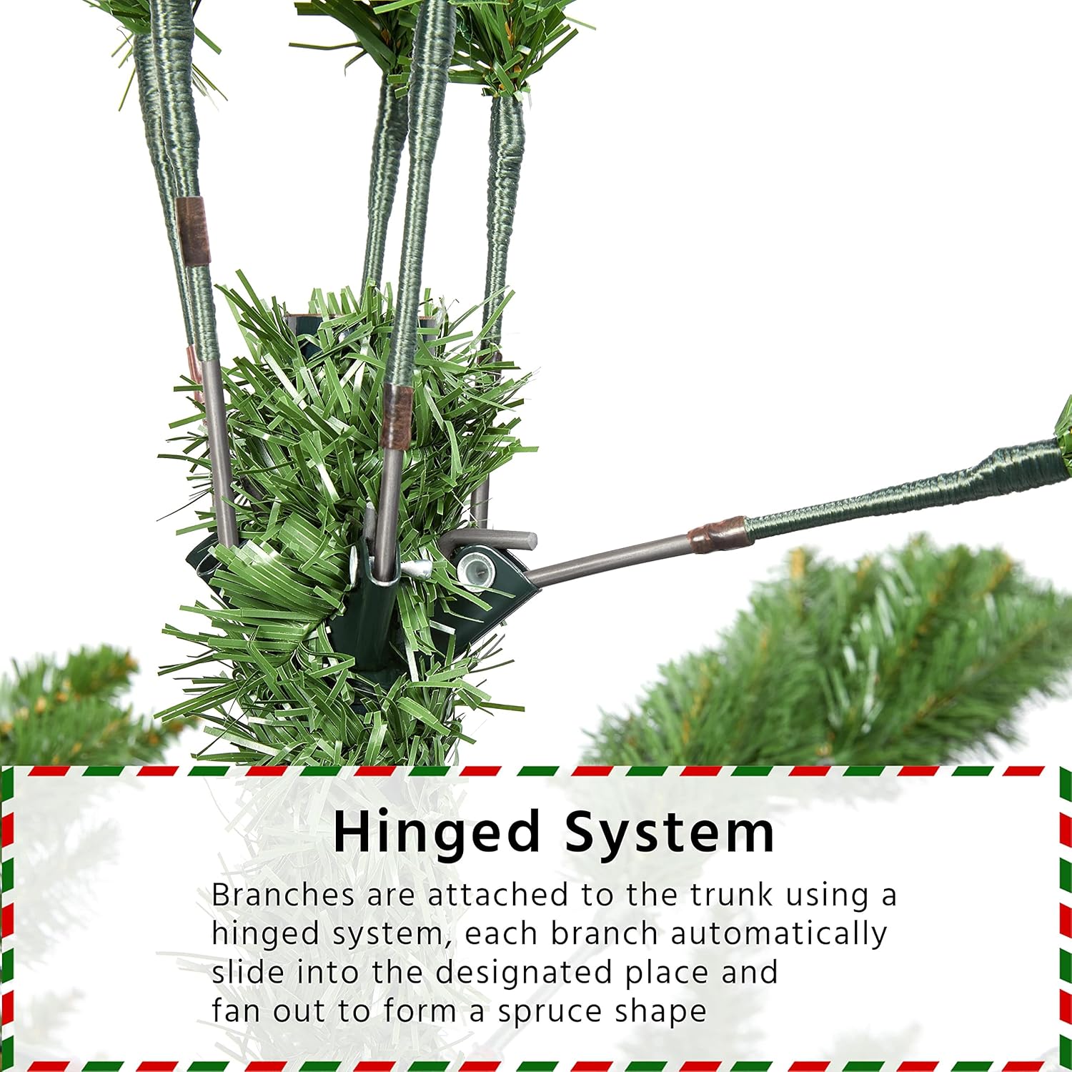 • Effortless Setup: This hinged artificial Christmas tree is divided into labeled sections for quick assembly. Simply connect the parts, unfold the stand, and secure it with screws for a seamless setup
