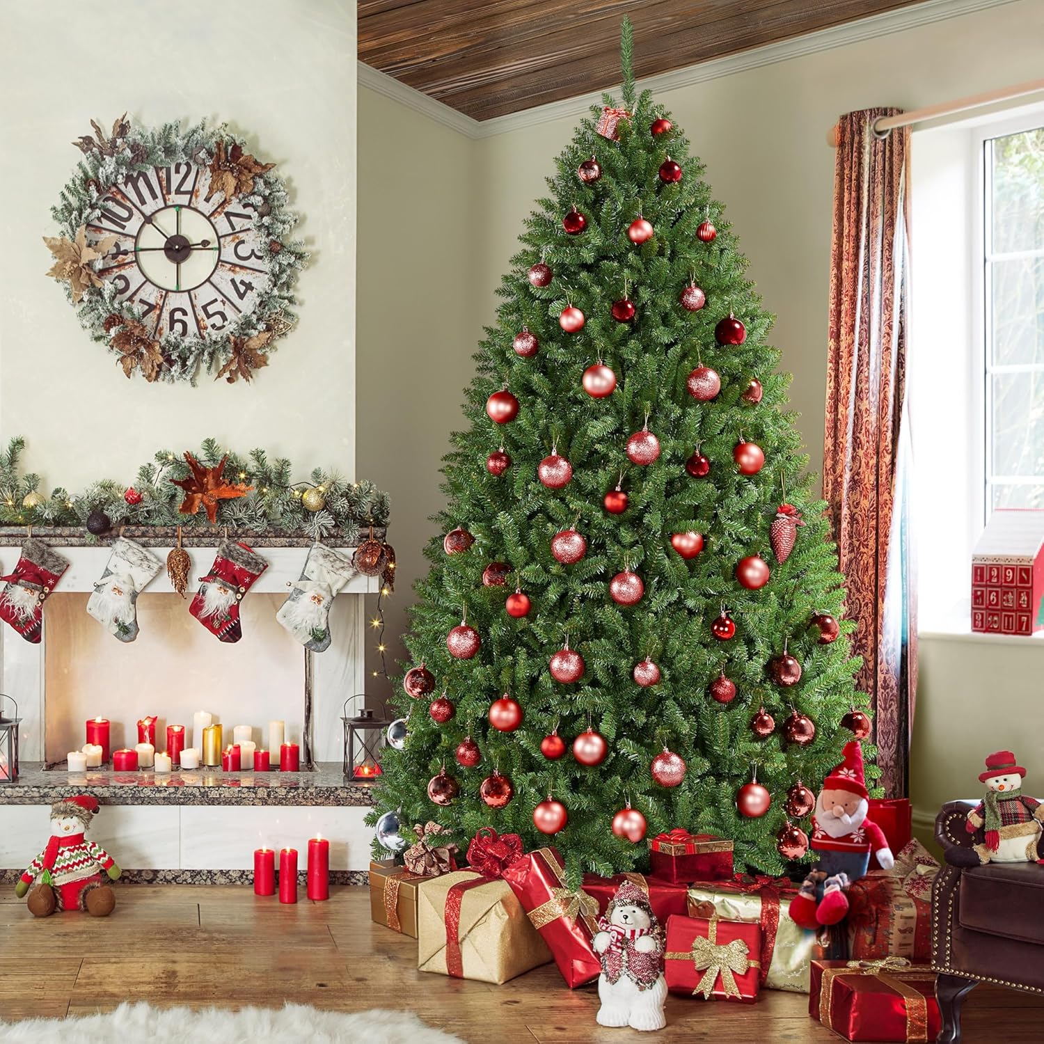 • Ultra-full Christmas Tree: This artificial Christmas tree features a hinged design with numerous branches and tips, creating a full, fluffy appearance from every angle for a beautiful holiday display