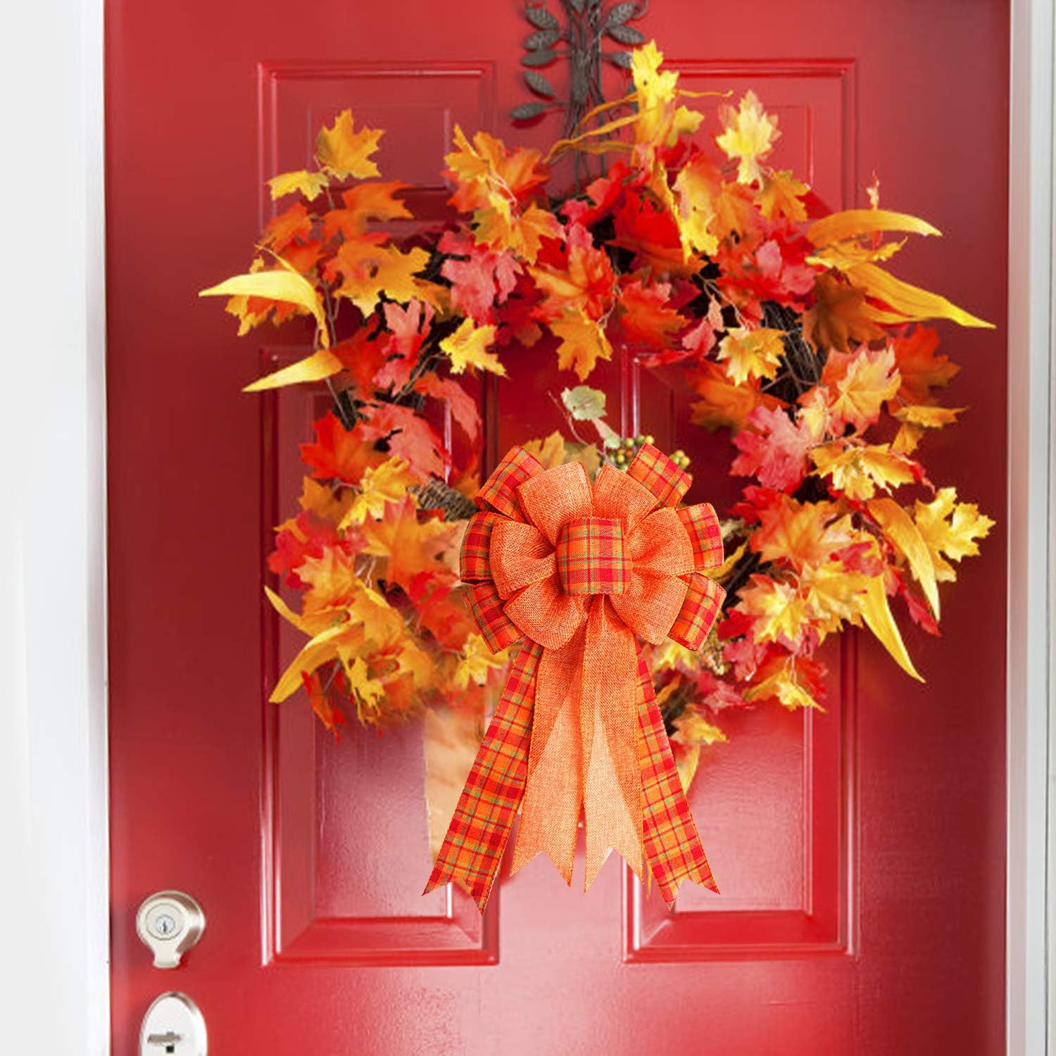 • Design Concept: The lattice pattern is wrapped in orange, which is distinct and three-dimensional. Orange is the color of autumn. Decorating the family with this bow can feel the joy of harvest.and our bows can also be reused, are portable and store easily. Each bow is pre-shaped, no need to DIY by yourself.