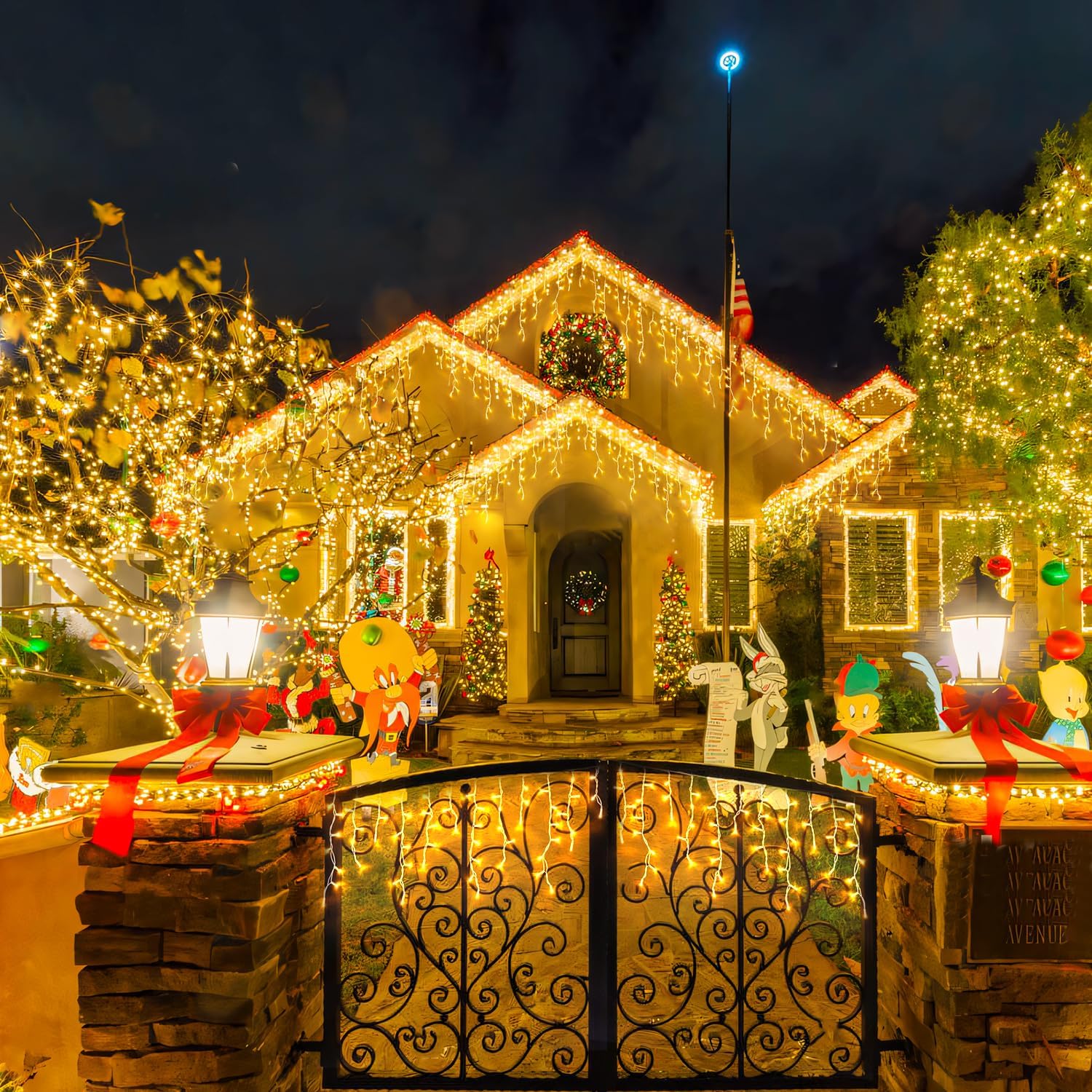 • 【Super Long & Bright Icicle Christmas Lights】800 LED warm white icicle lights with 160 drops, 57.92ft lights long and 9.84ft extension cord. The perfect length to wrap the eave of the front porch. It is the best choice for your outdoor Christmas lights. Drop cords of different lengths meet your Christmas outdoor and indoor decoration needs.