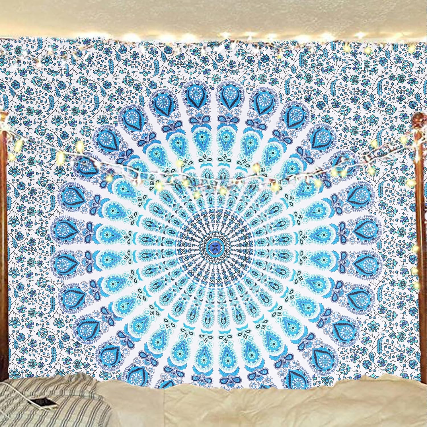 Bless International Handmade Indian hippie Bohemian Psychedelic Peacock Mandala Wall hanging College Dorm Beach Throws Table Cloth Bedding Tapestry (Peacock Sky Blue, Poster(30x40Inches)(76x101cms))