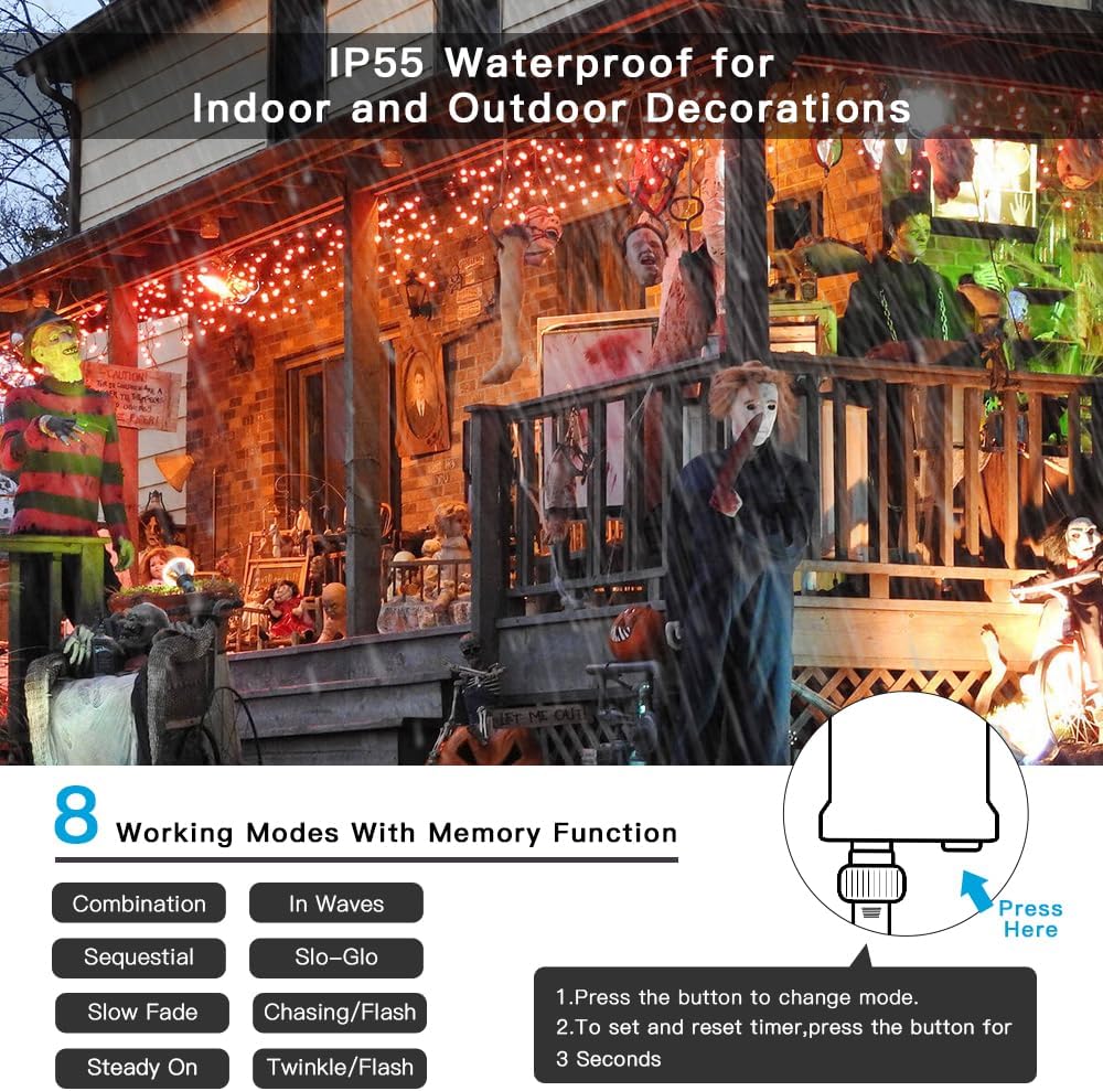 • 8 Modes + Remember Functional: These Christmas lights include 8 modes: combination, in waves, sequential, slo-glo, chasing/flash, slow fade, twinkle/flash, steady on. The controller is designed to remember the last setting after cutting off the power. No need to set the light again