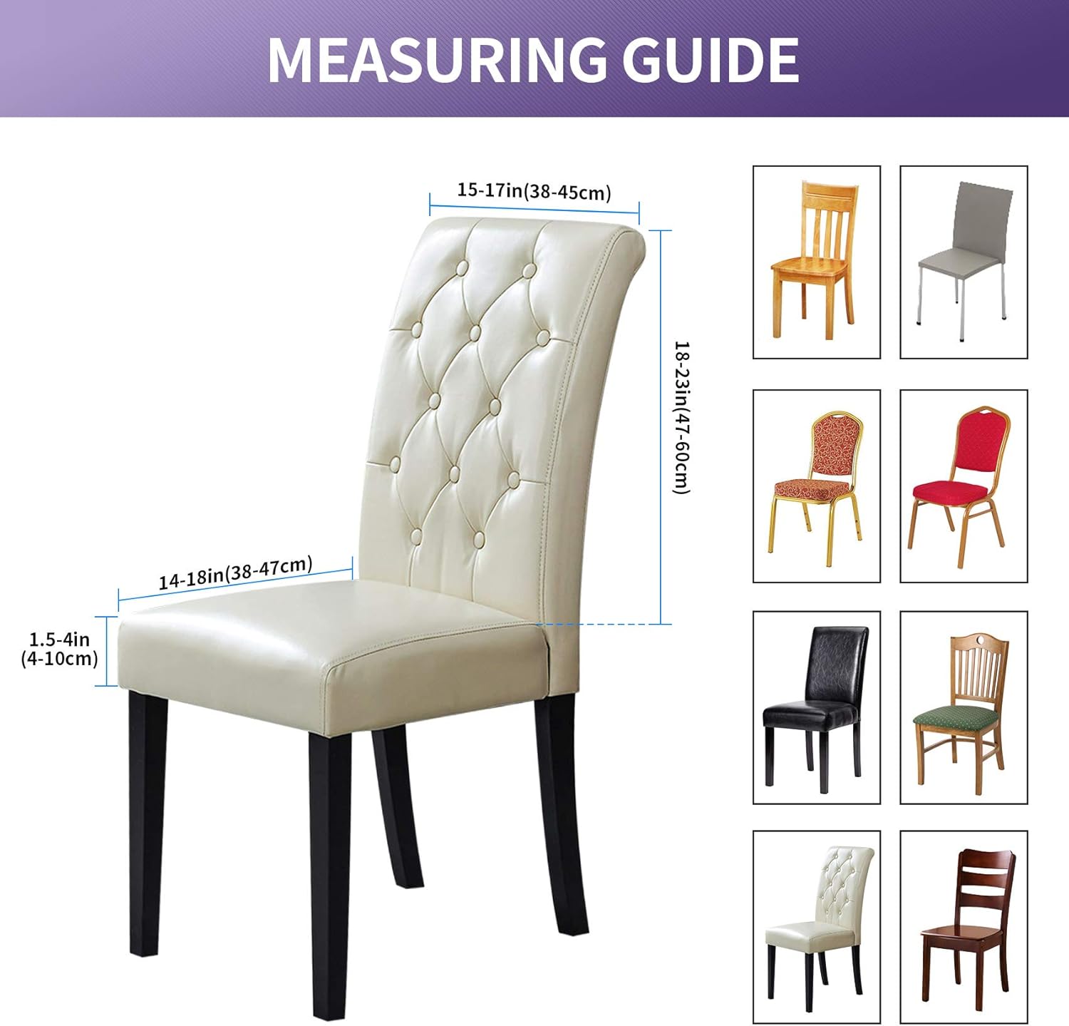 • 【PERFECT FIT】The dining chair cover fit for normal and high back parson chair.Chair-back height 18"-22'' and chair-back width 14"-19''.Chair seat width 14"-20'' and length 14"-20'' and thickness 2"-4''. More details please refer to the measurement guide in photo, please measure your chair before ordering.