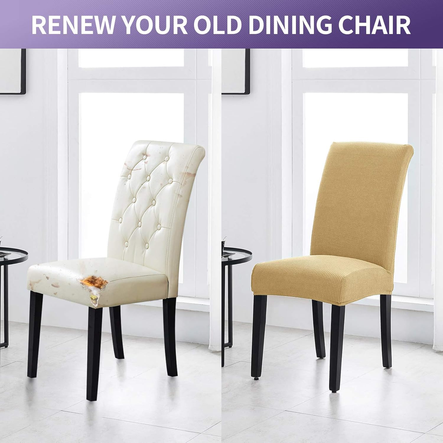 Joccun Chair Covers for Dining Room Set of 4,Dining Chair Slipcovers Stretch Dining Room Chair Covers Seat Protector,Washable Parsons Chair Cover for Home,Hotel(Parmesan,4 Pack)