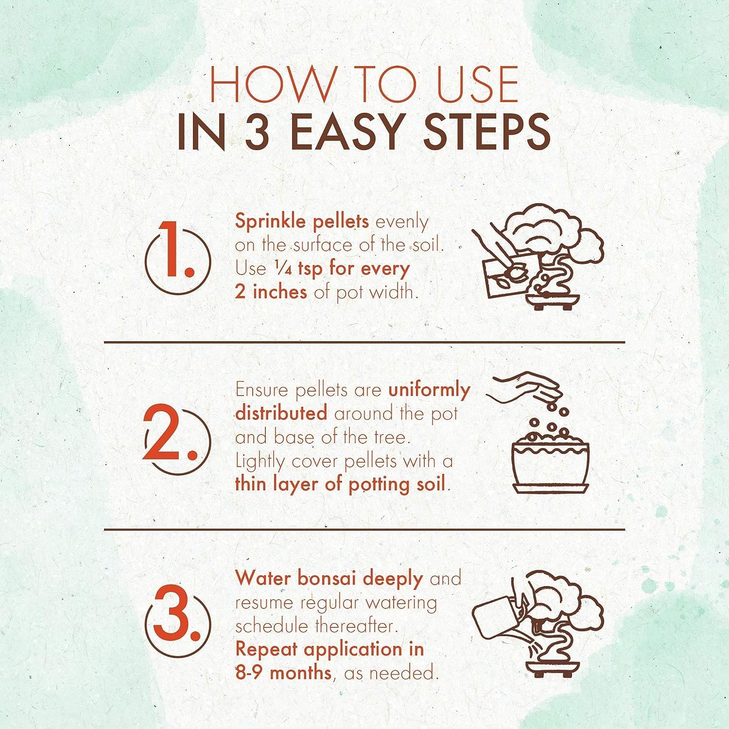 • STRESS FREE - Bonsai care made easy. No need to heavily mix our granular fertilizer into your potting soil. Just carefully place pellets around the base of your tree and watch it thrive with every watering! Great for pots with gravel, moss, pebbles, pumice, lava rocks and other organic soil mixes.