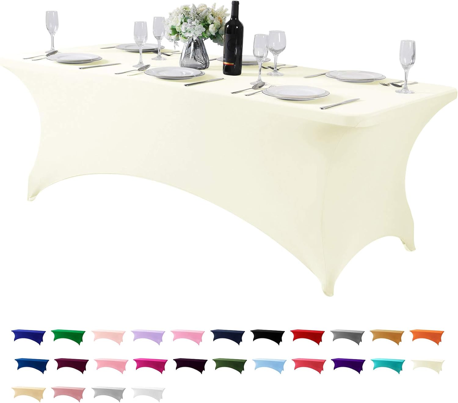 Spandex Table Cover for 8FT or 4ft or 6ft Table Universal Fitted Stretch Tablecloth for Party, Banquet, Wedding and Events-Ivory