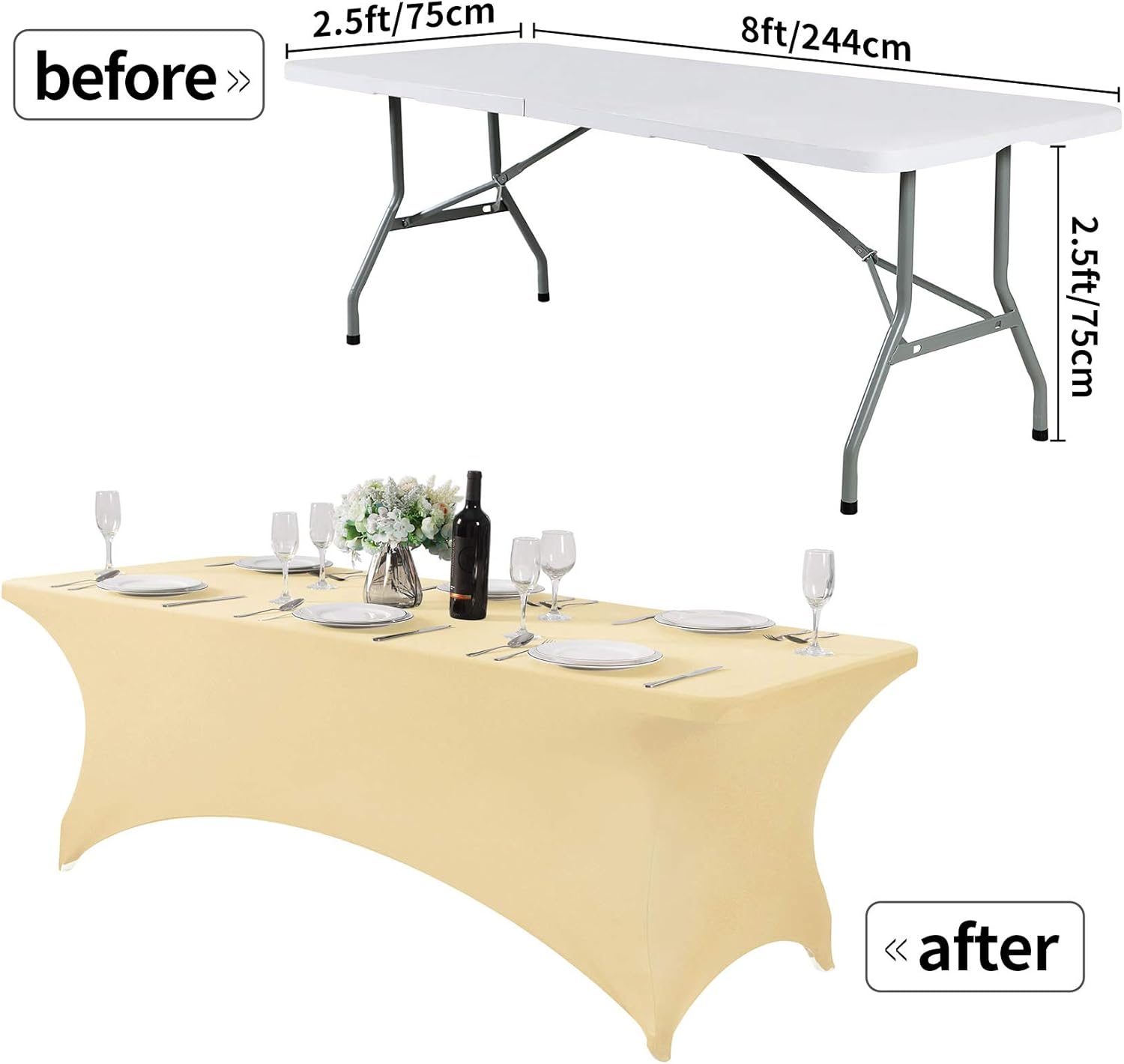 Spandex Table Cover for 8FT or 4ft or 6ft Table Universal Fitted Stretch Tablecloth for Party, Banquet, Wedding and Events-Champagne