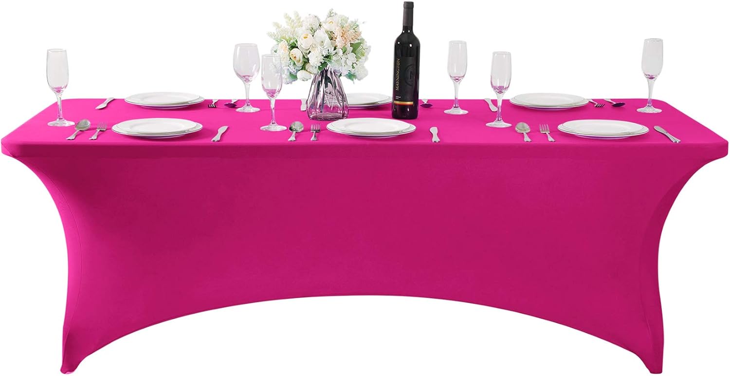 Spandex Table Cover for 8FT or 4ft or 6ft Table Universal Fitted Stretch Tablecloth for Party, Banquet, Wedding and Events-Fuchsia