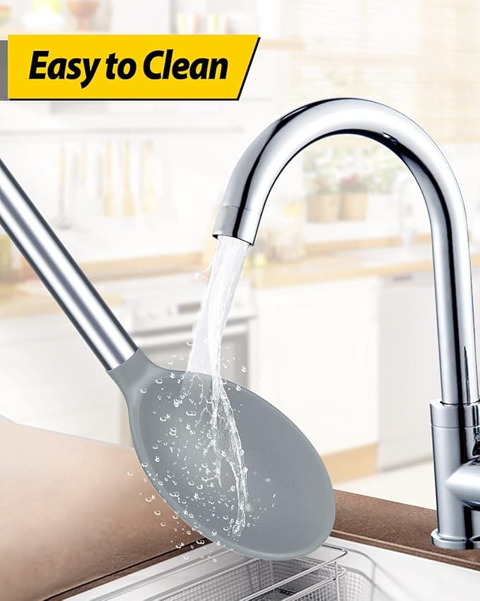 • More Safe and Healthy : Our silicone spoons are made of food-grade silicone, free of BPA;Even at high temperatures, there is no need to worry about melting or deforming;And the soft silicone head won't scratch the coating, it can better protect your pot