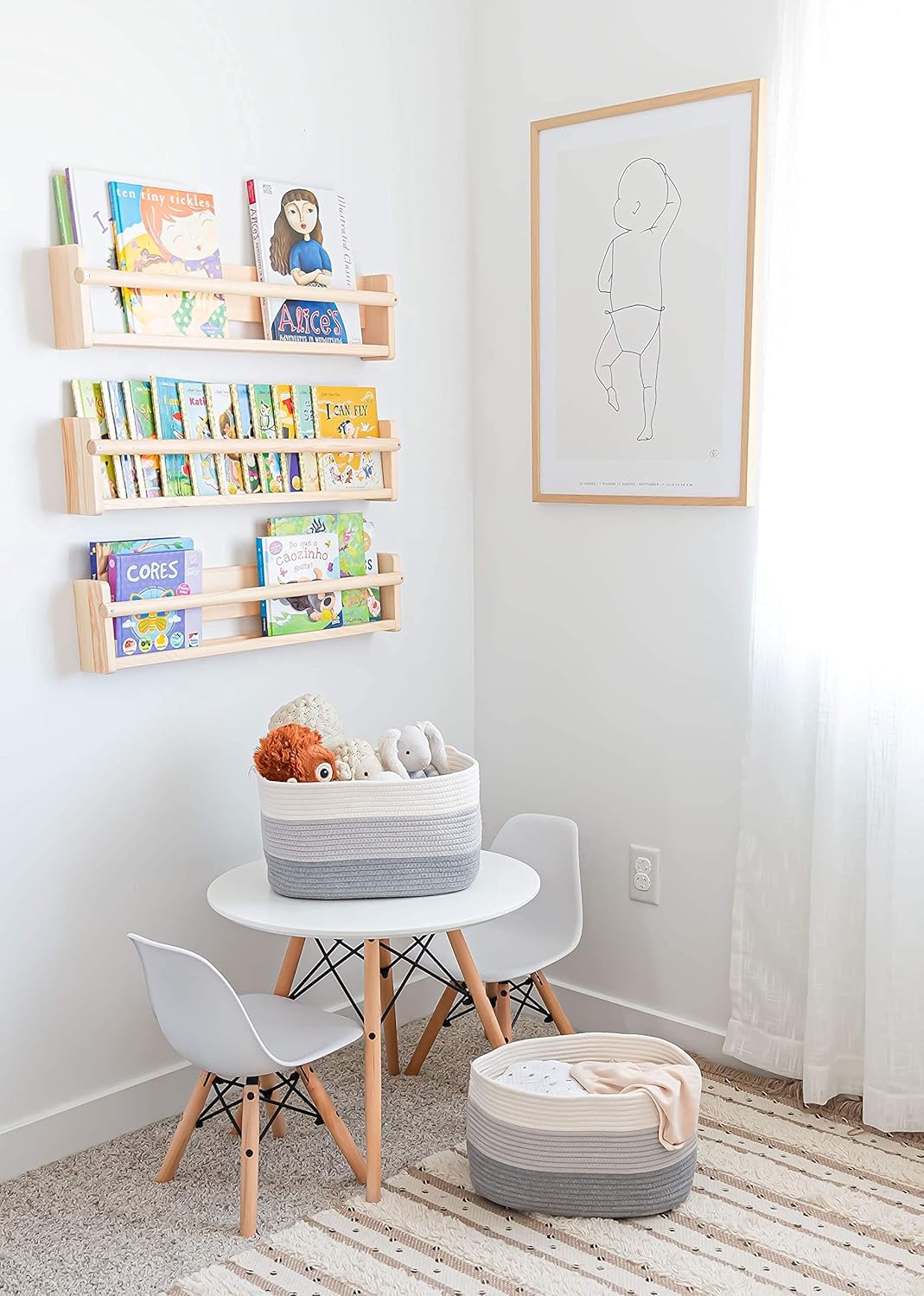 • Discrete, Built-In Carry Handles – These fabric rope baskets for storage also feature slim hand holds built right into the sides of each round basket for a seamless look that’s also functional. Perfect for picking up toys or carrying items around the house.