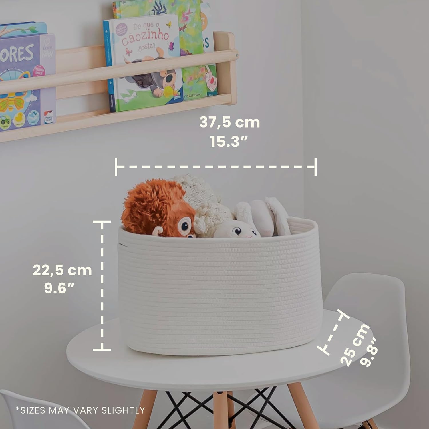 • Discrete, Built-In Carry Handles – These fabric rope baskets for storage also feature slim hand holds built right into the sides of each round basket for a seamless look that’s also functional. Perfect for picking up toys or carrying items around the house.