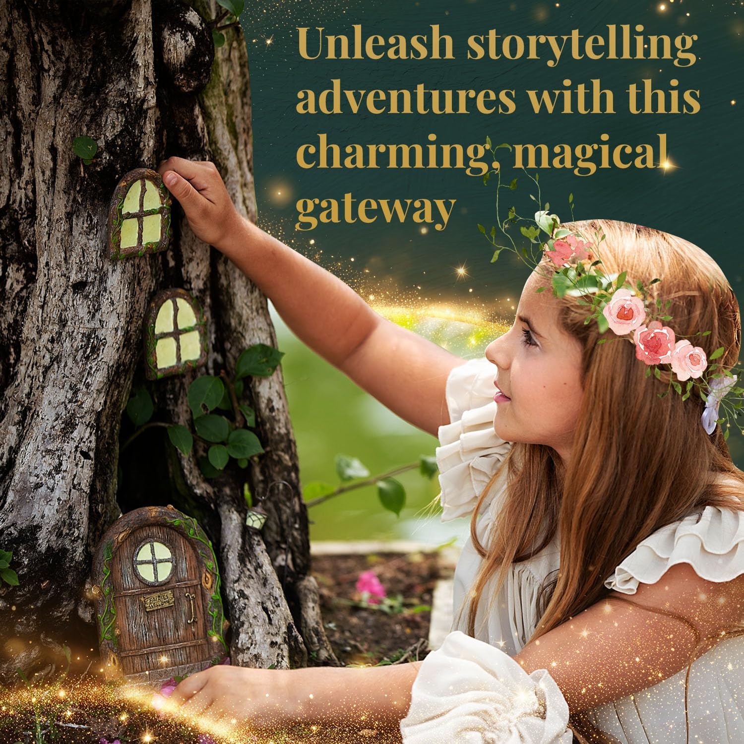 • Magic fairy door kit: Create a whimsical and enchanting fairy garden with our Fairy Garden Kit. This kit includes everything you need to bring your fairy dreams to life, including a fairy door , glow two the dark windows, and a little lantern. Transform your outdoor space into a magical realm with these fairy house decor and fairy garden accessories. Let your imagination soar as you create a tiny treehouse for your fairy friends using our fairy door kit. This fairy houses for outside is perfectly sized for bringing your garden to life.
