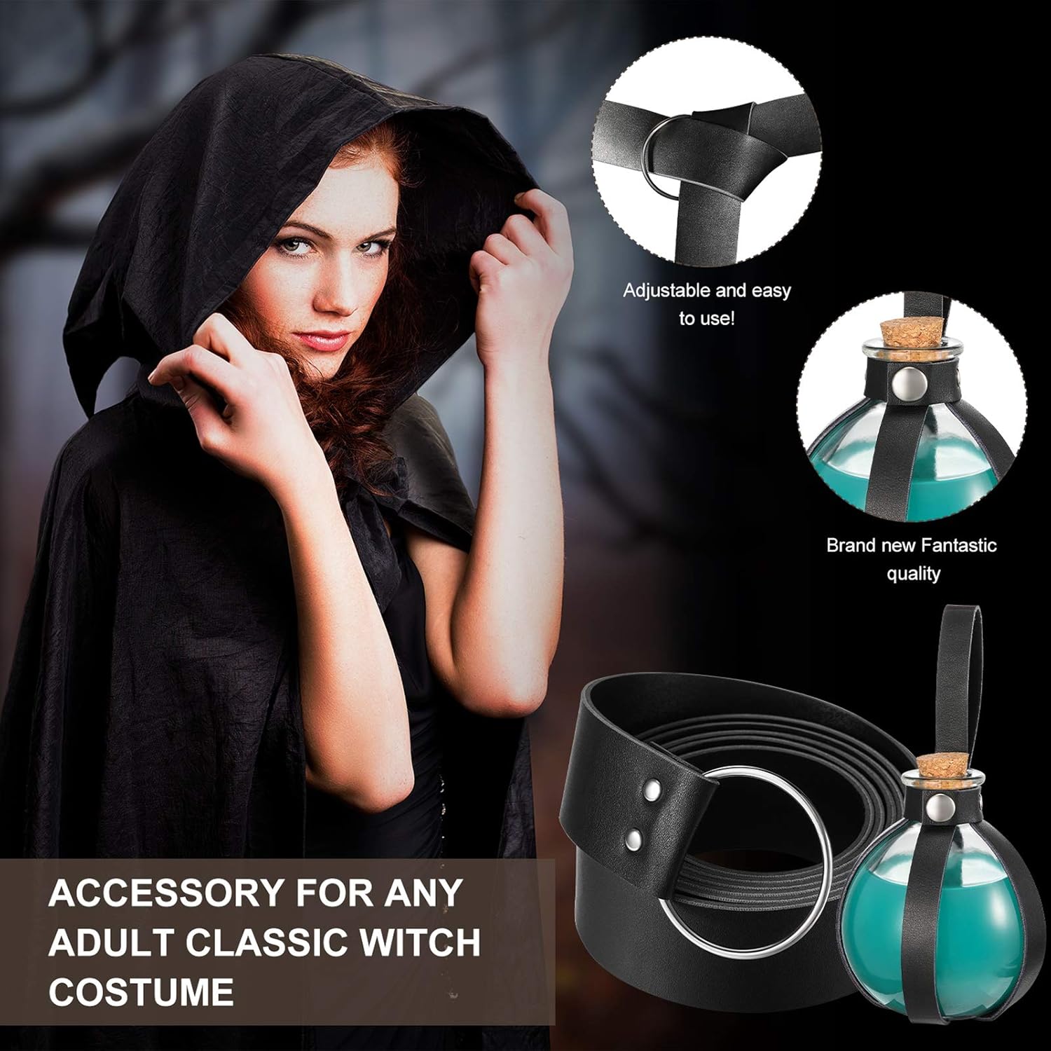 • What you get: package includes 1 piece 200 ml clear glass cork-top spherical ball bottle, equipped with a medieval leather belt, a wonderful combination that will help you add the finishing touch for any witch or wizard costume
