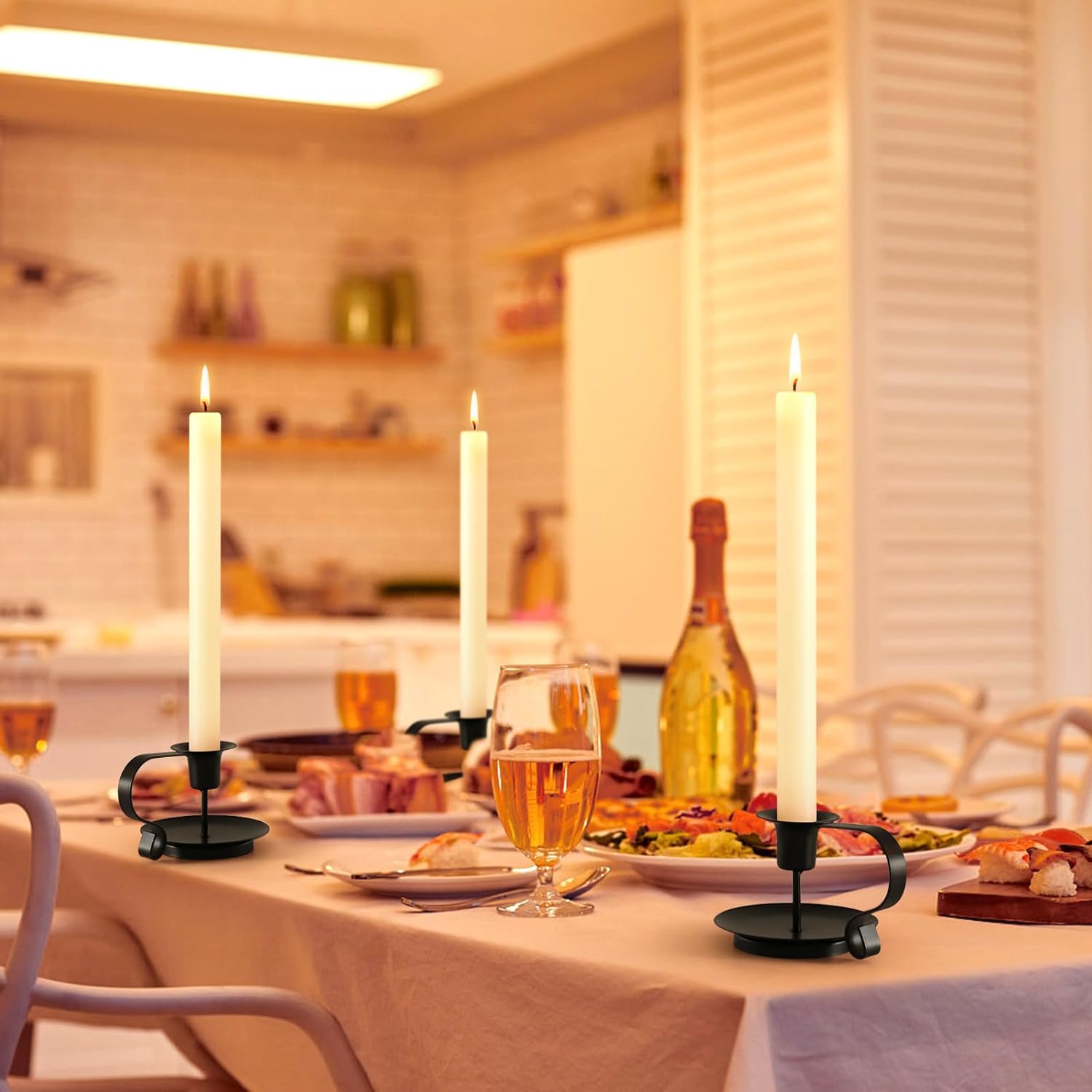 • Vintage Chamberstick Design – Inspired by antique candle holders, this black metal taper candle holder features a handle for easy carrying and a timeless farmhouse look