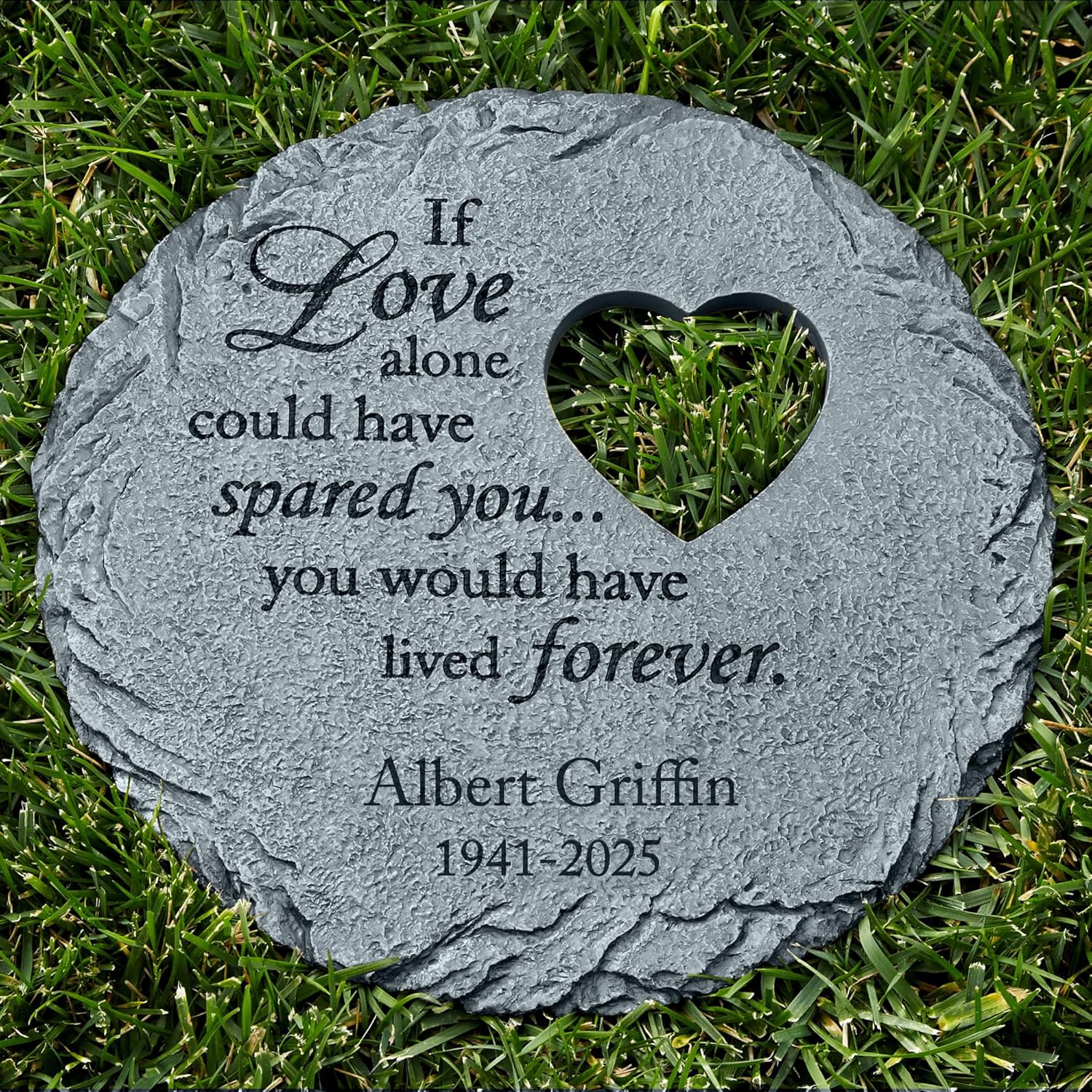• UNIQUELY PERSONALIZED: Make their memory live forever. Customize your elegant and timeless garden stone with their name up to 22 characters and 2 numeric years. “If Love alone could have spared you…you would have lived forever." always appears.