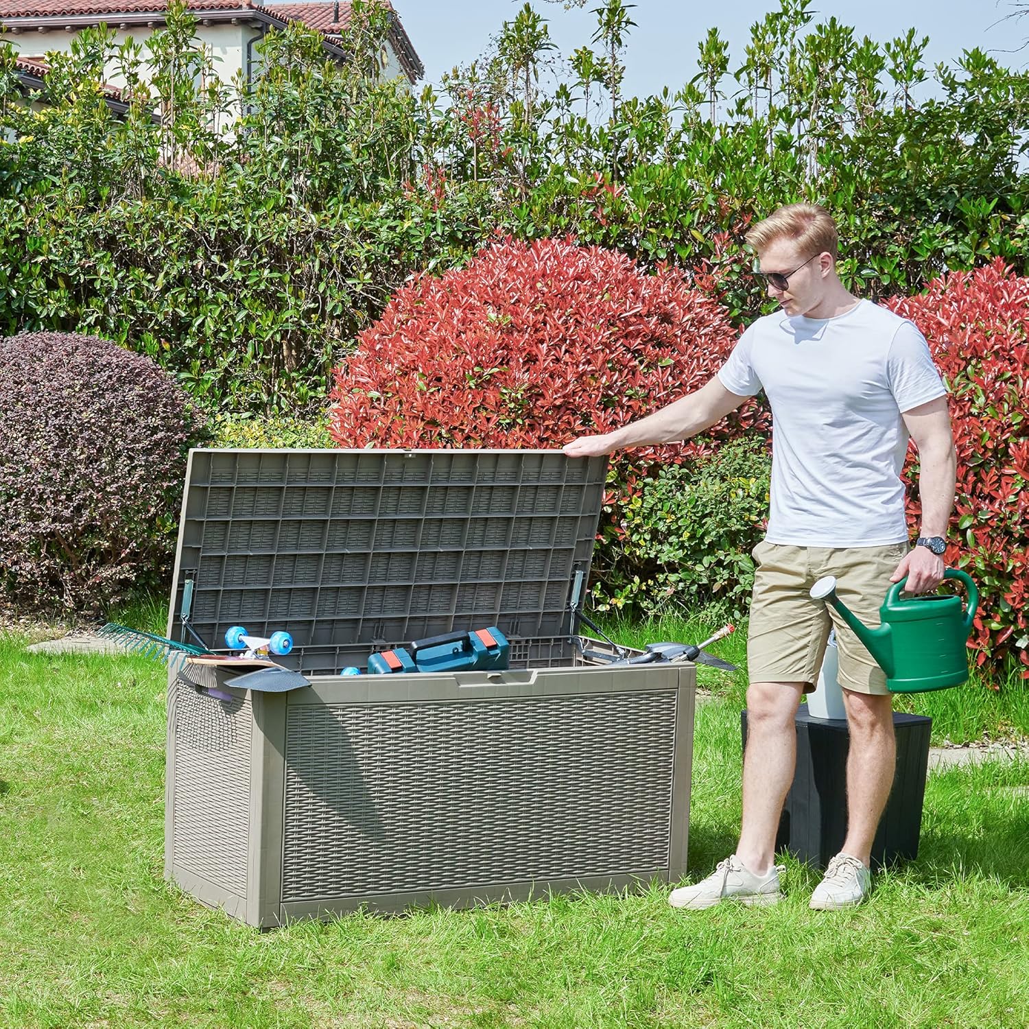 • VERSATILE STORAGE- Can be used indoors or outdoors to store patio furniture cushions, gardening tools, outdoor supplies, and pool accessories; Lockable lid safely protects your items.