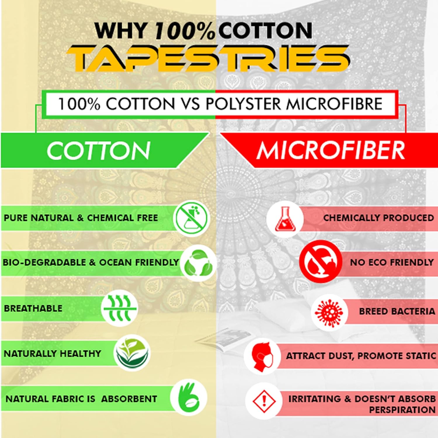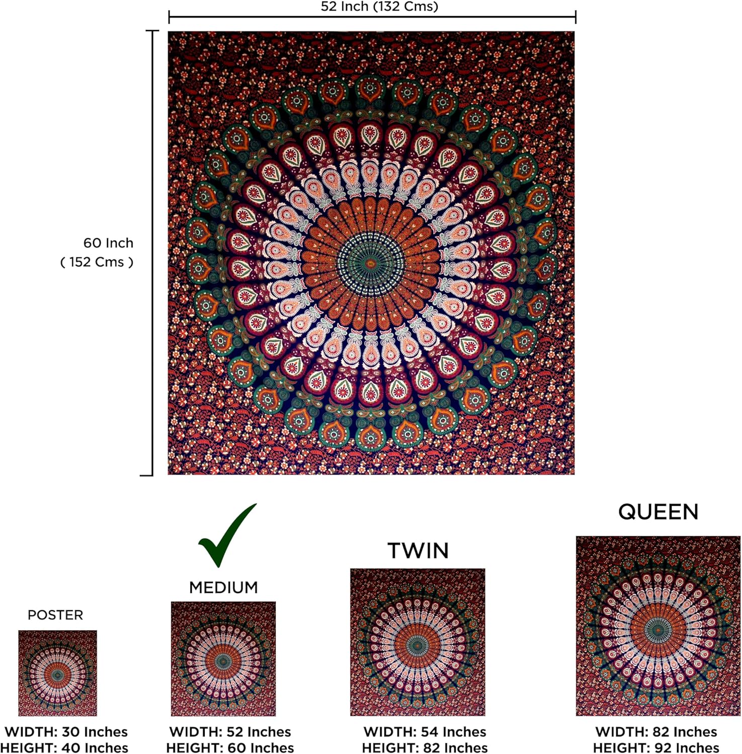 • MATERIAL & SIZE : Mandala boho Tapestry is made of 100% cotton fabric, made and printed in India, With hand sewing, easy to hang, the edges are neat and finished and used for both indoor and outdoor purpose, size Medium (52x60 Inches / 132x152 Cms)