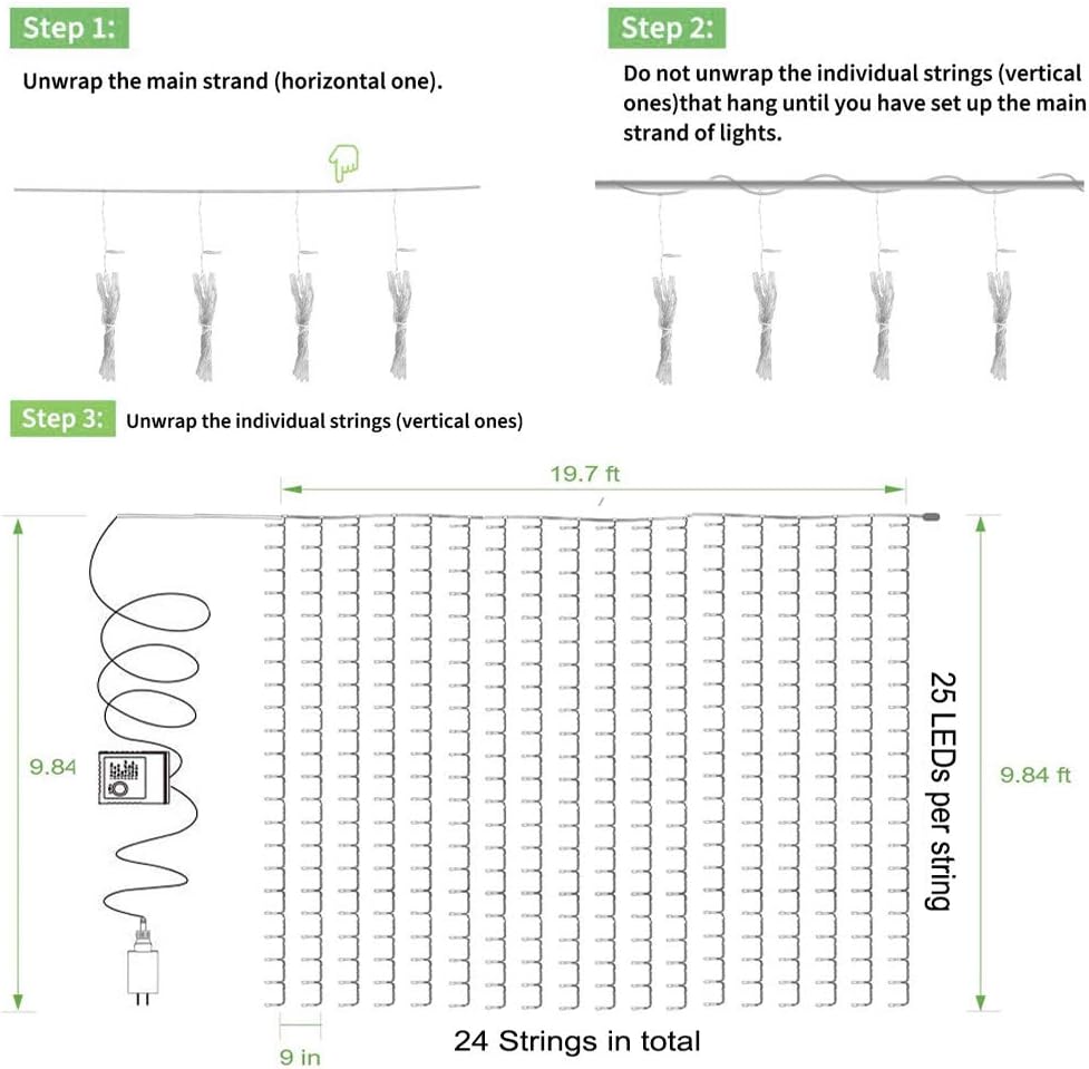 • [20 ft x 10 ft Curtain Lights] Boasting 600 LED lights, 2-3 times wider than others, making it ideal for outdoor decor. The product has an IP44 weatherproof rating, but please ensure you protect the plug and controller, as they are not waterproof. (please Note: they are NOT connectable)