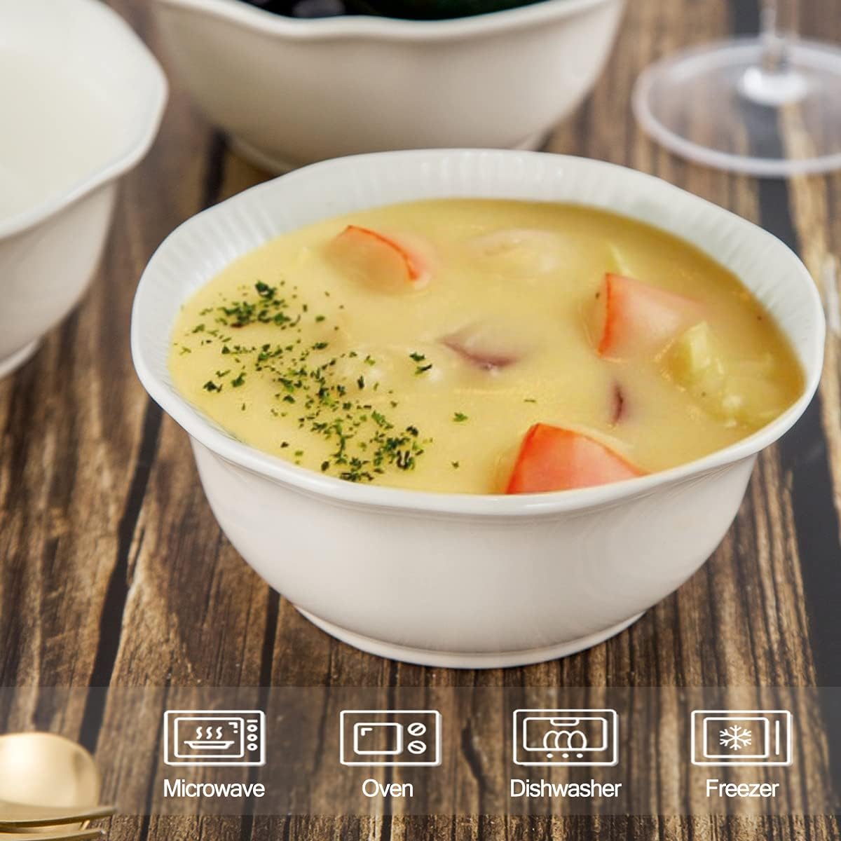 Hasense Soup Bowls 20 OZ, Ceramic Bowls Set of 4 for Kitchen, Stoneware Porcelain Cereal Bowls for Soup, Cereal, Oatmeal, Fruit, Salad, Noodle and Rice, Microwave Dishwasher Safe, Ivory