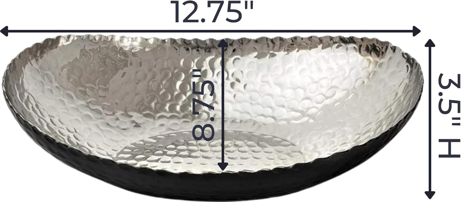 • PERFECT SIZE FOR HOME DECOR: Measuring 12.75 x 8.75 x 3.5 inches, this large decorative bowl is ideal for both practical use and stylish display. Great as a modern fruit bowl, decor bowl, or key dish bowl for entryway table—a standout addition to any room. Its hammered design and exquisite finish make it an attractive centerpiece for any kitchen countertop, dining table, or coffee table, adding a touch of sophistication to your home decor.