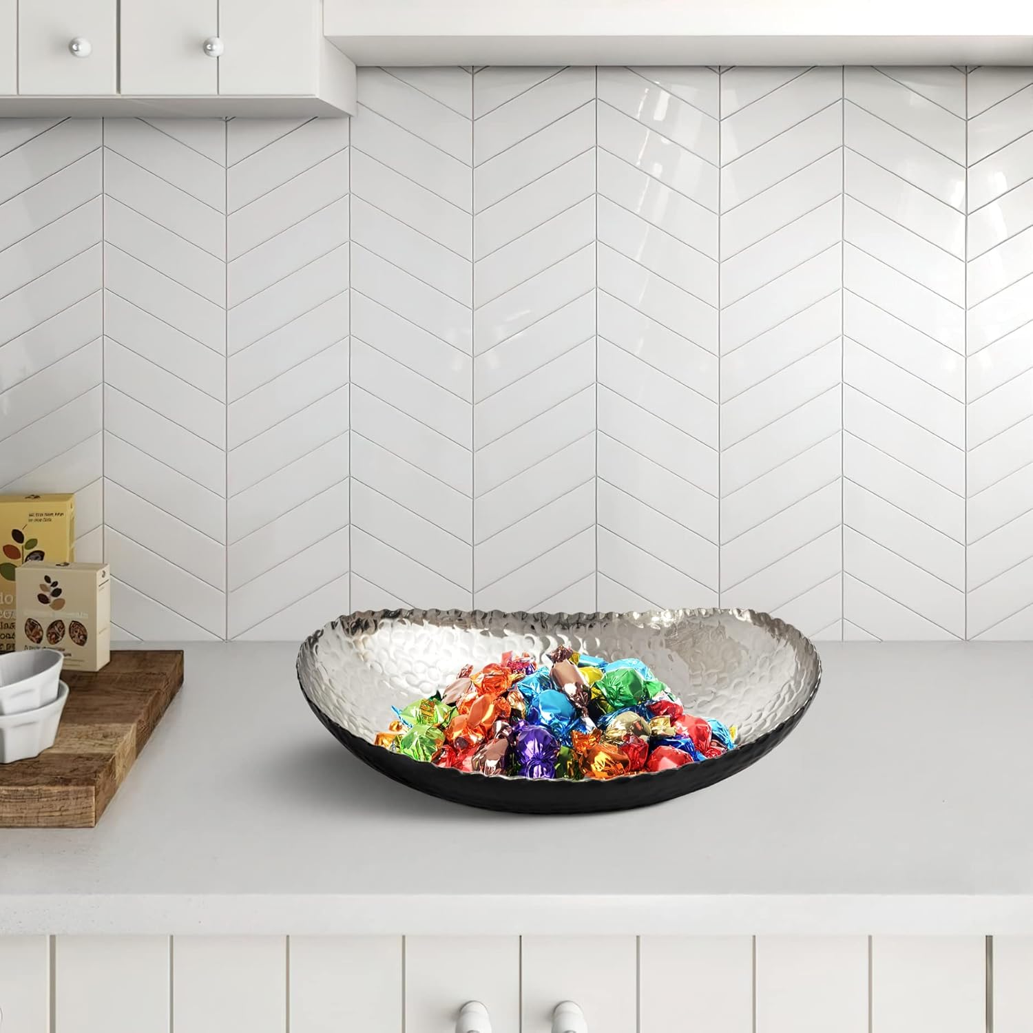 Monarch Abode Hand Hammered Decorative Bowl for Home Decor, 12.75-Inch Black and Nickel Plated – Key Bowl for Entryway Table, Catch All, Decorative Fruit Basin, Key Holder, Bowls for Home Decor