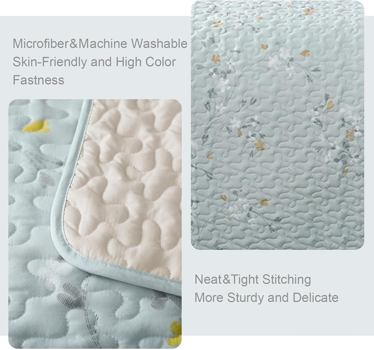 • Design: Floral branches patterns are printed with special printing and dyeing crafts which make color more vibrant and ensure a better color fastness. Sewed with exquisite neat stitching, the aqua flowers bedspreads bring a stylish and elegant decoration to your bedroom