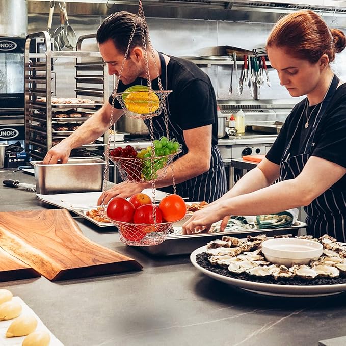 • Metal hanging fruit basket 3 tier rustic hanging baskets for plant holder vegetable- large fruit baskets for kitchen boho decor
