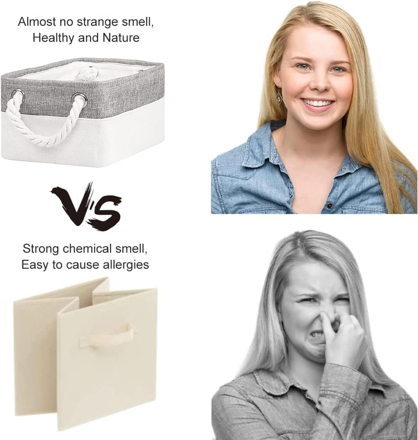 • No chemical smell: These Organization and Storage are mainly made of natural linen, thick EVA and lining canvas.Stick together using the latest technology, no glue, sturdy and durable, with only a faint linen smell.Baskets gift for empty are wonderful choices.