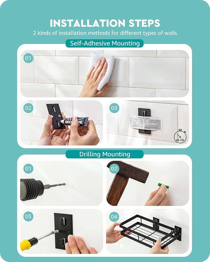 • [TWO WAYS TO INATALL] You can choose the SUPER STRONG ADHESIVE or SCREW to mount the support frame to the wall firstly and then put the floating shelf onto it. All the mounting screws and fixings are included. It is very easy to install.