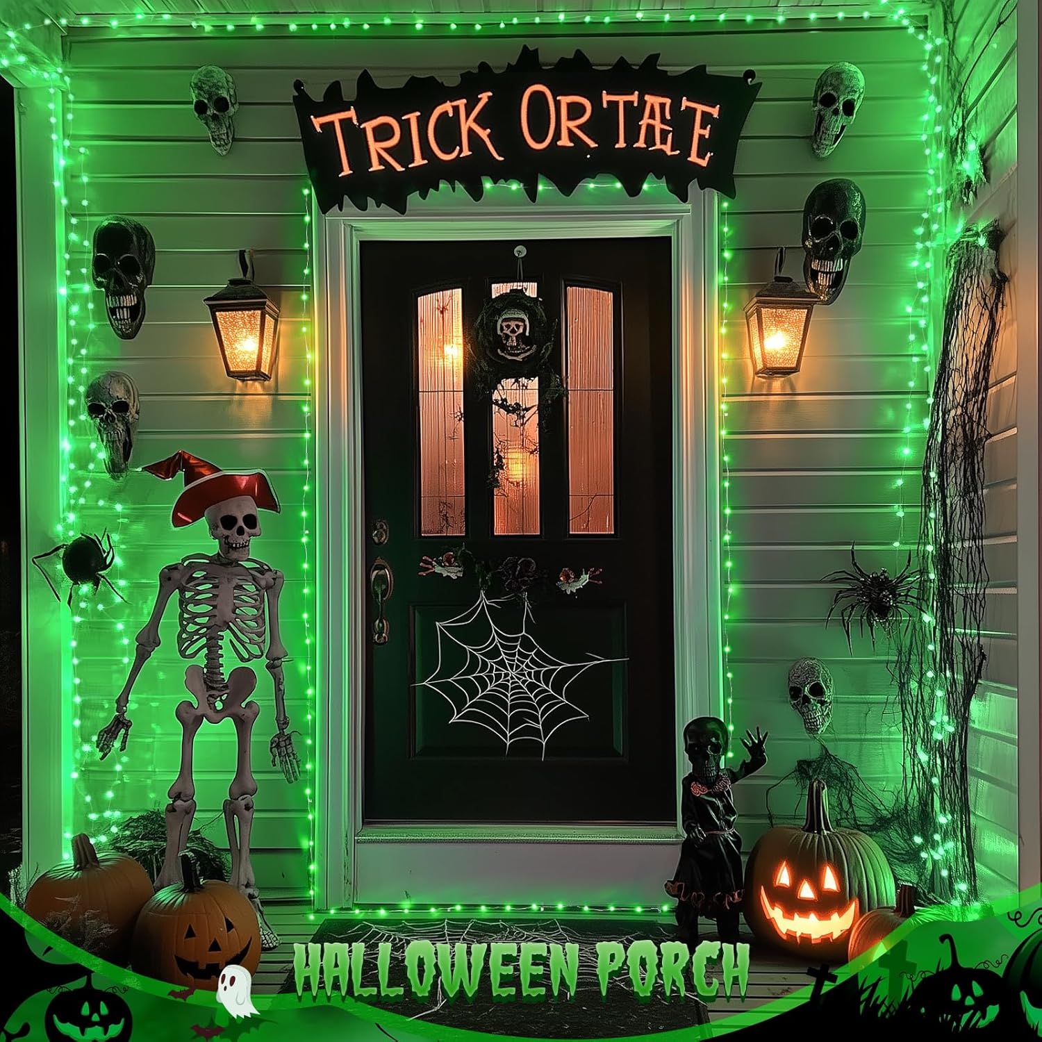 • 2 Pack Green Halloween Lights: 100 LED bulbs on 32.8 feet copper wire, with a steady 360-degree viewing angle, ideal for decorating your gardens, patio, yard, deck, stage, holiday, etc. What's more, in the dark, the wire fades invisible, leaving only the bright Green Christmas lights, creating a joyful ambiance to Christmas decorations