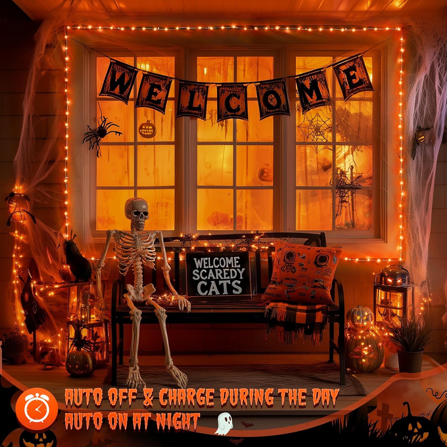 • 【IP44 Waterproof Halloween Lights Outdoor】Both the copper wire and the solar panel are IP44 Waterproof, they withstand all kinds of weather, including heavy rain and snow. Solar Halloween string lights are suitable for both indoor and outdoor usage without any worry of short circuits or weather damage.