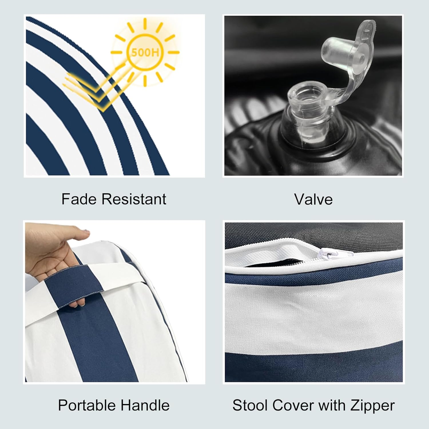 • Quality Support: 250 micrometer PVC liner ensures lasting durability against tears and punctures; outdoor ottoman is light weighted enough to carry, but can also bear up to 250 pounds (113kg). It brings you comfort even if an adult sit on it