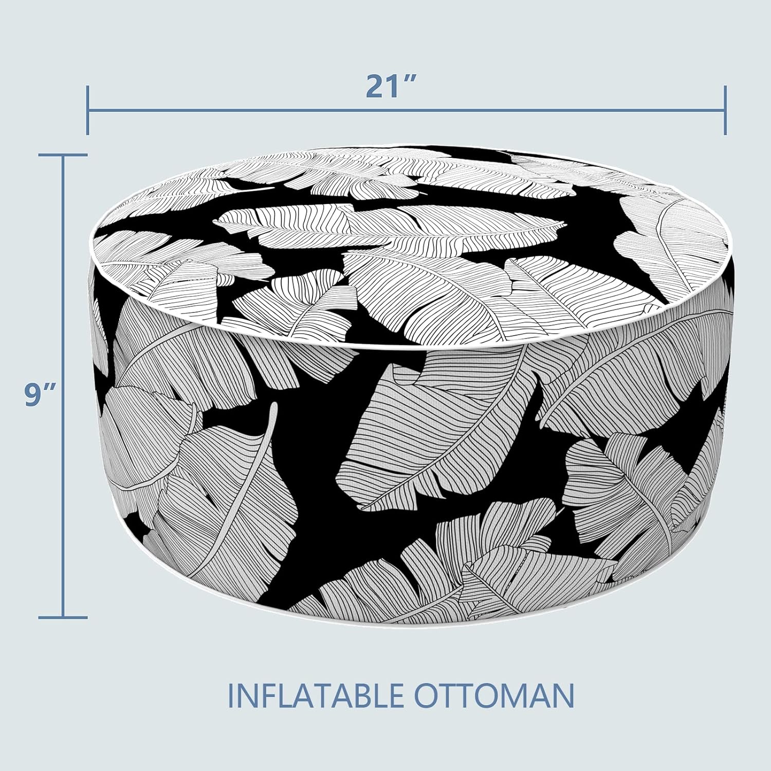 • PACKAGE INCLUDING: FOOT PUMP IS NOT INCLUDED. This value bundle come with 1 pcs indoor outdoor inflatable ottoman measures D21” x H9” (53 x 23cm). Made of durable and soft polyester fabric, sturdy inflatable PVC liners.