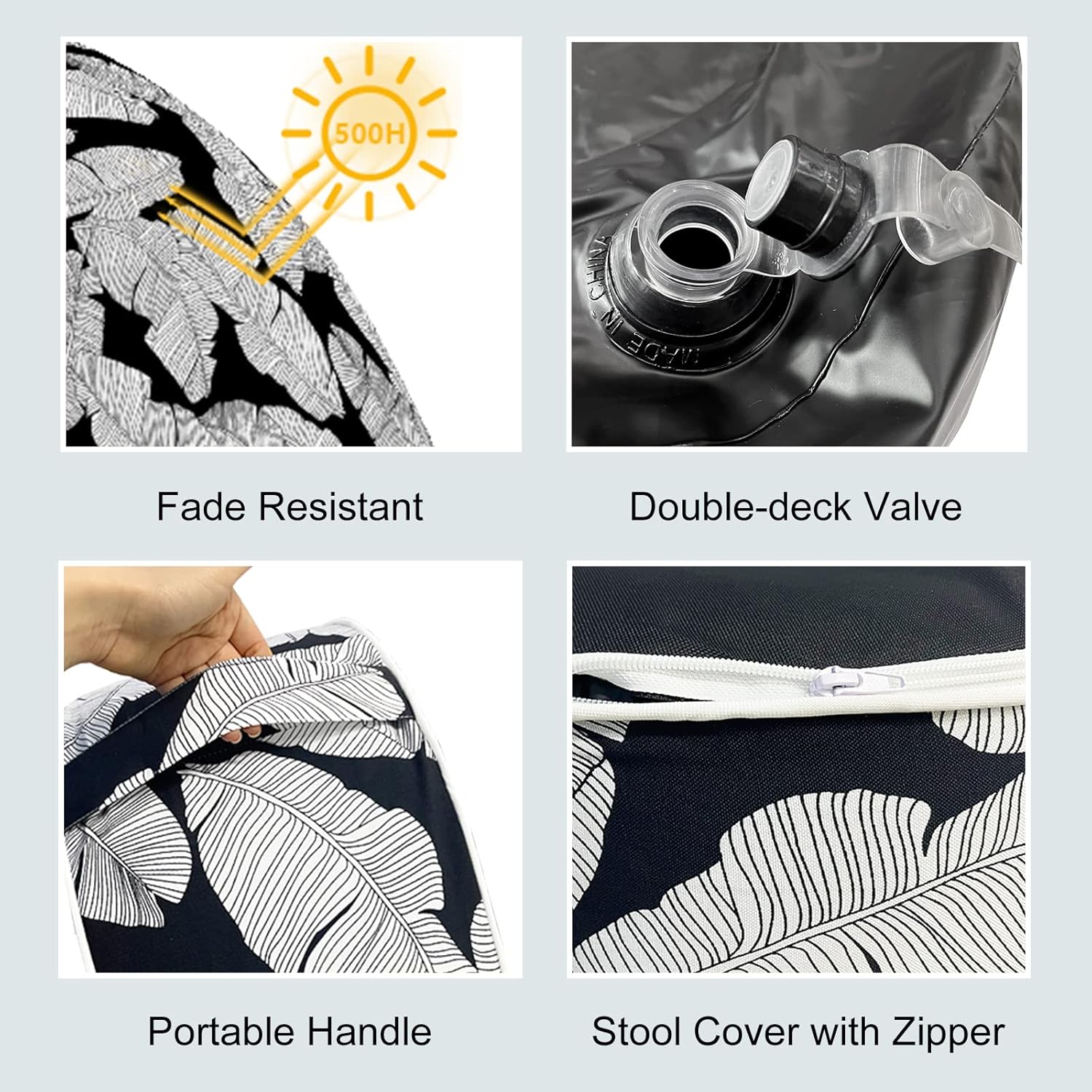 LVTXIII Inflatable Stool Ottoman Footrest with Handle, Indoor or Outdoor Foot Rest for Home Patio Garden and Camping, D21 x H9, Black Lush Leaf Jungle