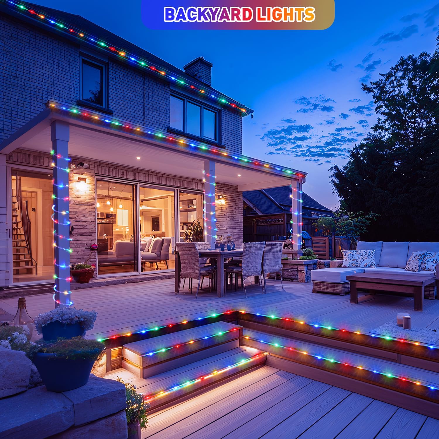 • [FLEXIBLE AND WIDELY USED] The high-quality flexible and foldable clear PVC tube is cleverly matched with a copper wire solar rope light. It can easily build the shapes you need, and decorate whatever you want with these sparkling and magical waterproof rope lights! It is an ideal decoration for courtyards, fences, bars, weddings, trees, decks, roofs, hotels, yards, gardens, terraces, streets, commercial buildings, shopping centers, Christmas, and trampolines.