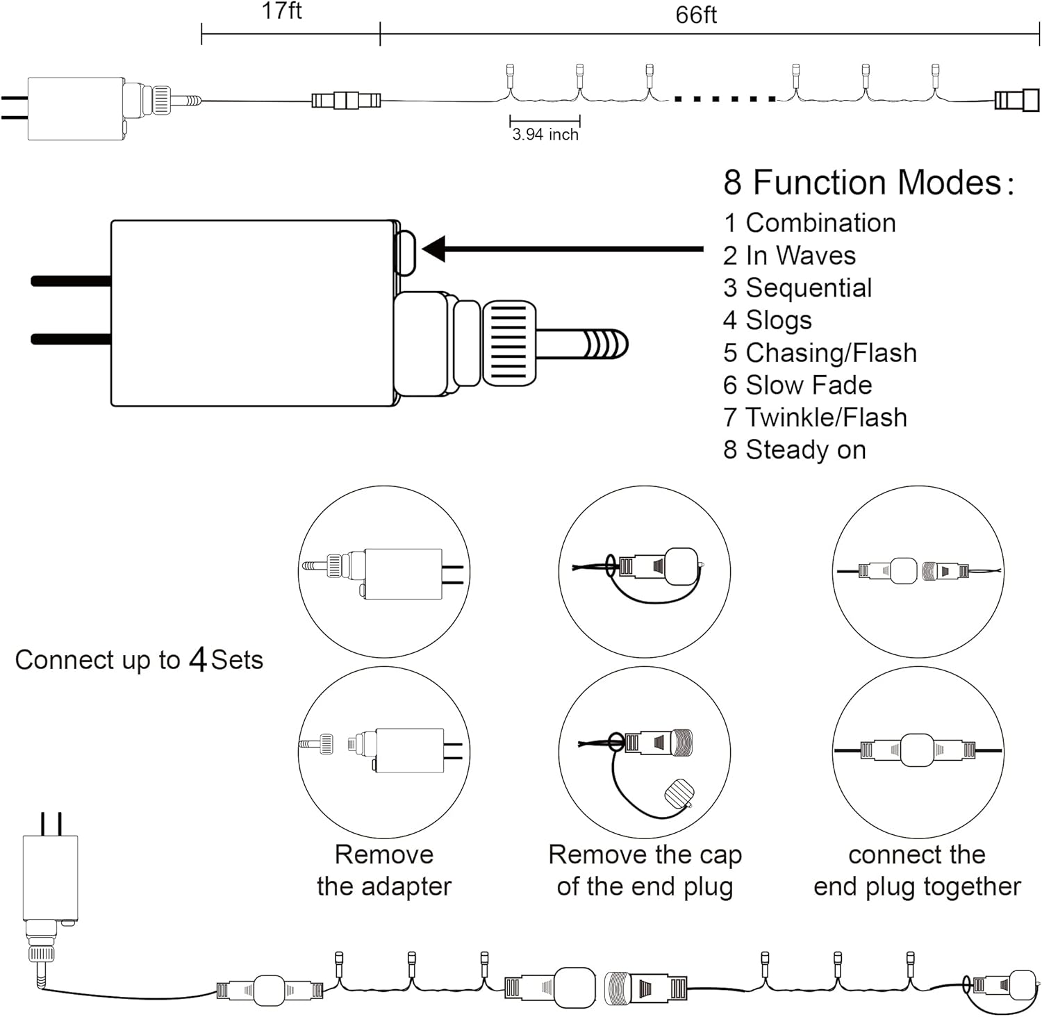 • Safety Green Wire String Lights: Made of high quality copper wire and PVC for long time using. Keep at a low temperature state after lighting up for hours, ensure and maximize the safety. Directly plug in and unplug it for power on and off. US standard outlet, voltage 110V. Adapter to the first LED light: 17ft. Total length(lights string and leading line): 83ft