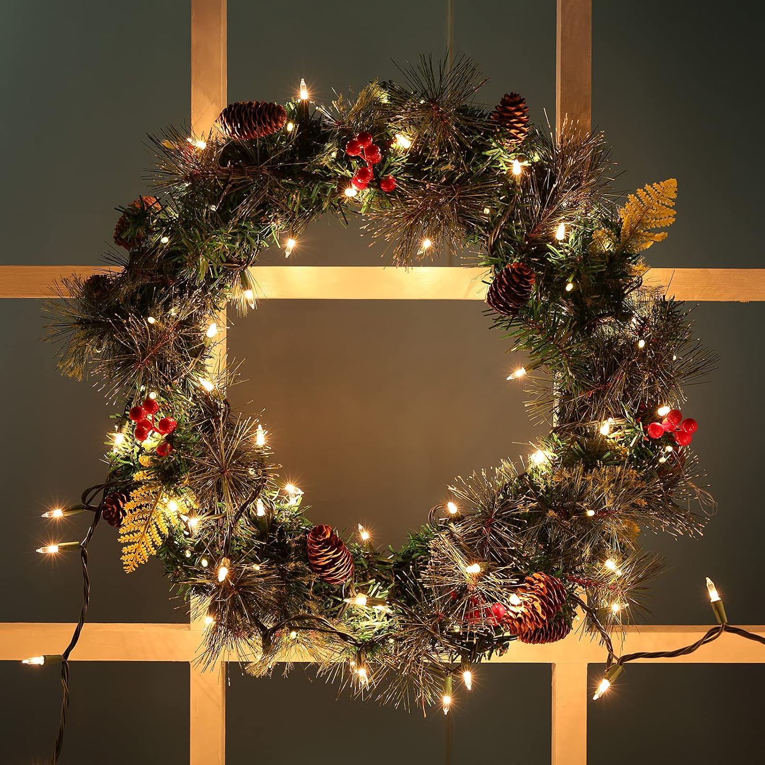 • 🎄 End-to-End Connectable & Easy to Install: Each Christmas string light features a male and a female safe plug, an easy end-to-end connection allows up to 5 strands (125ft in total) connected together to illuminate a wider range. Just hang the string light on wherever you like, power on, you will get a charming night with these bright lights!