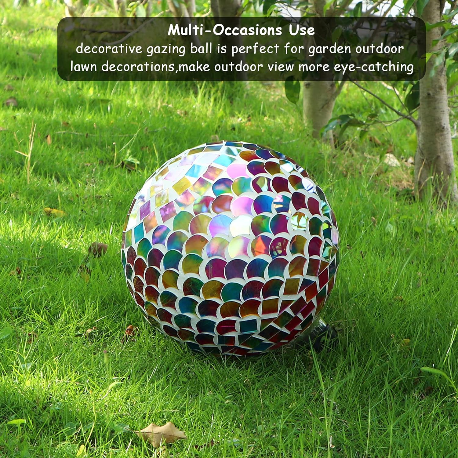 • Outdoor Garden Decor: Gazing globe ball is made from colorful glass pieces in a fan design, suitable for gardens lawn decor. When the sun hits mosaic ball they sparkle little dots of color all over the house and lawn