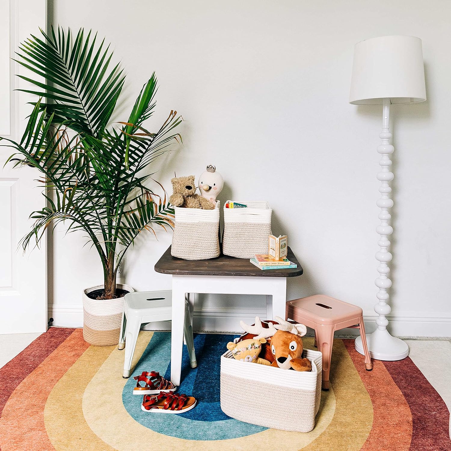 • Discrete, Built-In Carry Handles – These fabric rope baskets for storage also feature slim hand holds built right into the sides of each round basket for a seamless look that’s also functional. Perfect for picking up toys or carrying items around the house.