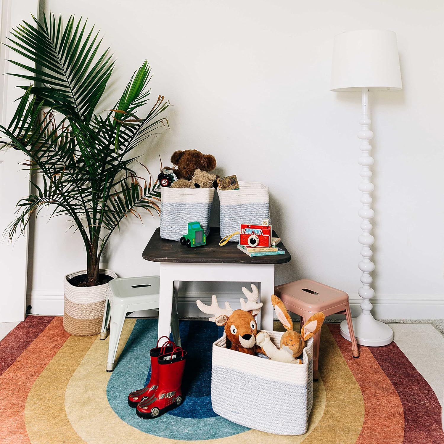 • Discrete, Built-In Carry Handles – These fabric rope baskets for storage also feature slim hand holds built right into the sides of each round basket for a seamless look that’s also functional. Perfect for picking up toys or carrying items around the house.