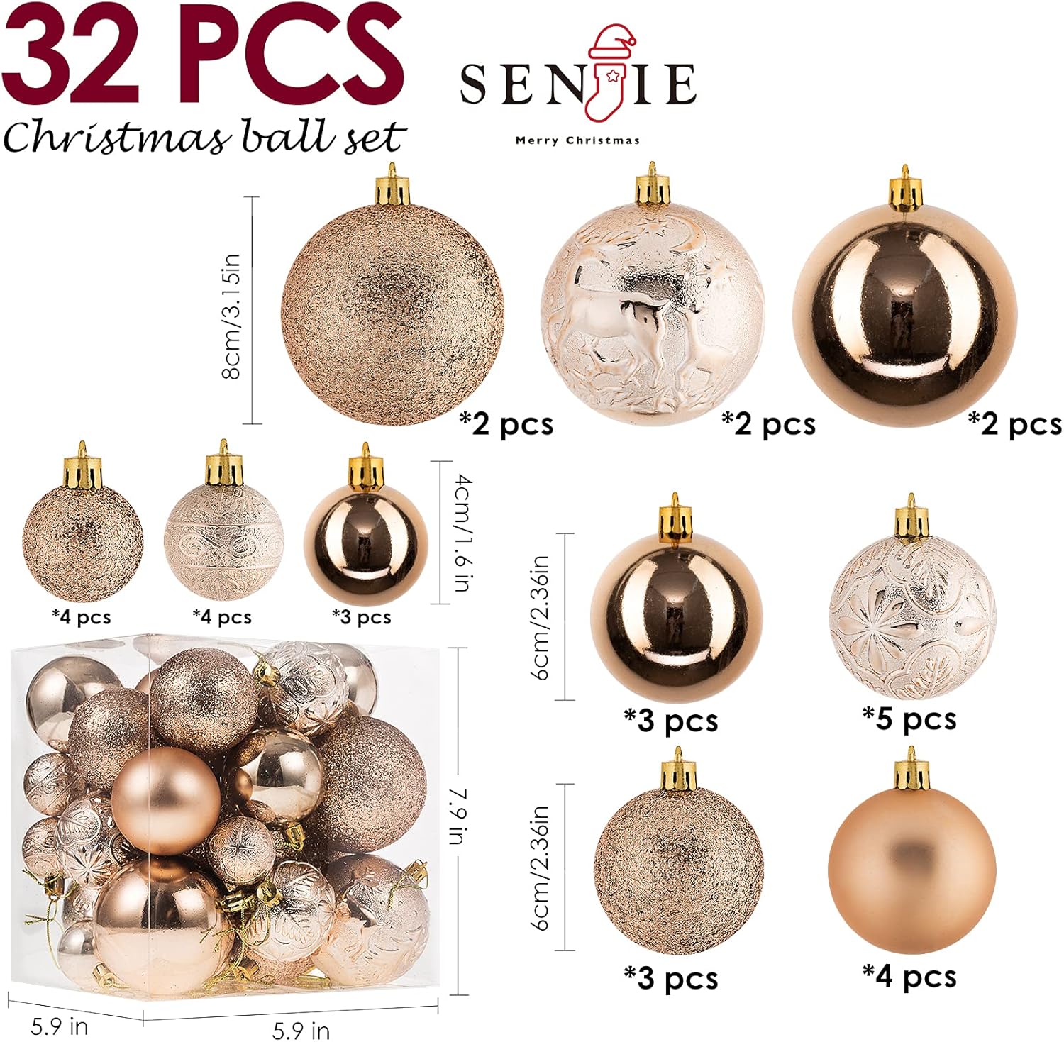 • ADD TOUCH TO YOUR TREE:Different textures making it easy to create a multidimensional look.Surfaces of ball:Spiral(4),Glitter plated(9),Shiny(8),Matte(4) and Christmas(2).