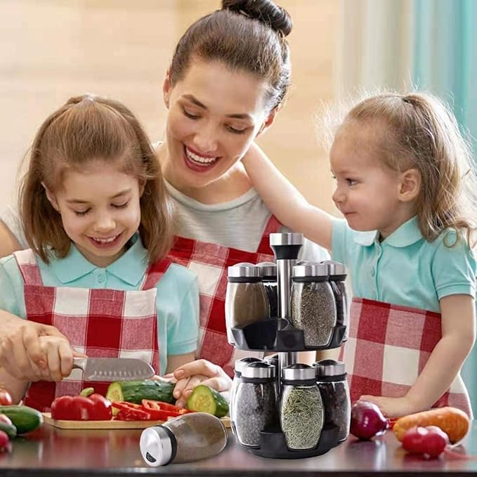 • 【Meet Your Various Needs】It contains 12 spice containers for your frequently-used spices and multiple seasoning holes help you to use it conveniently. you can use them as oil bottles, salt shakers, pepper shakers and so on, which means you can be handy during the cooking process.