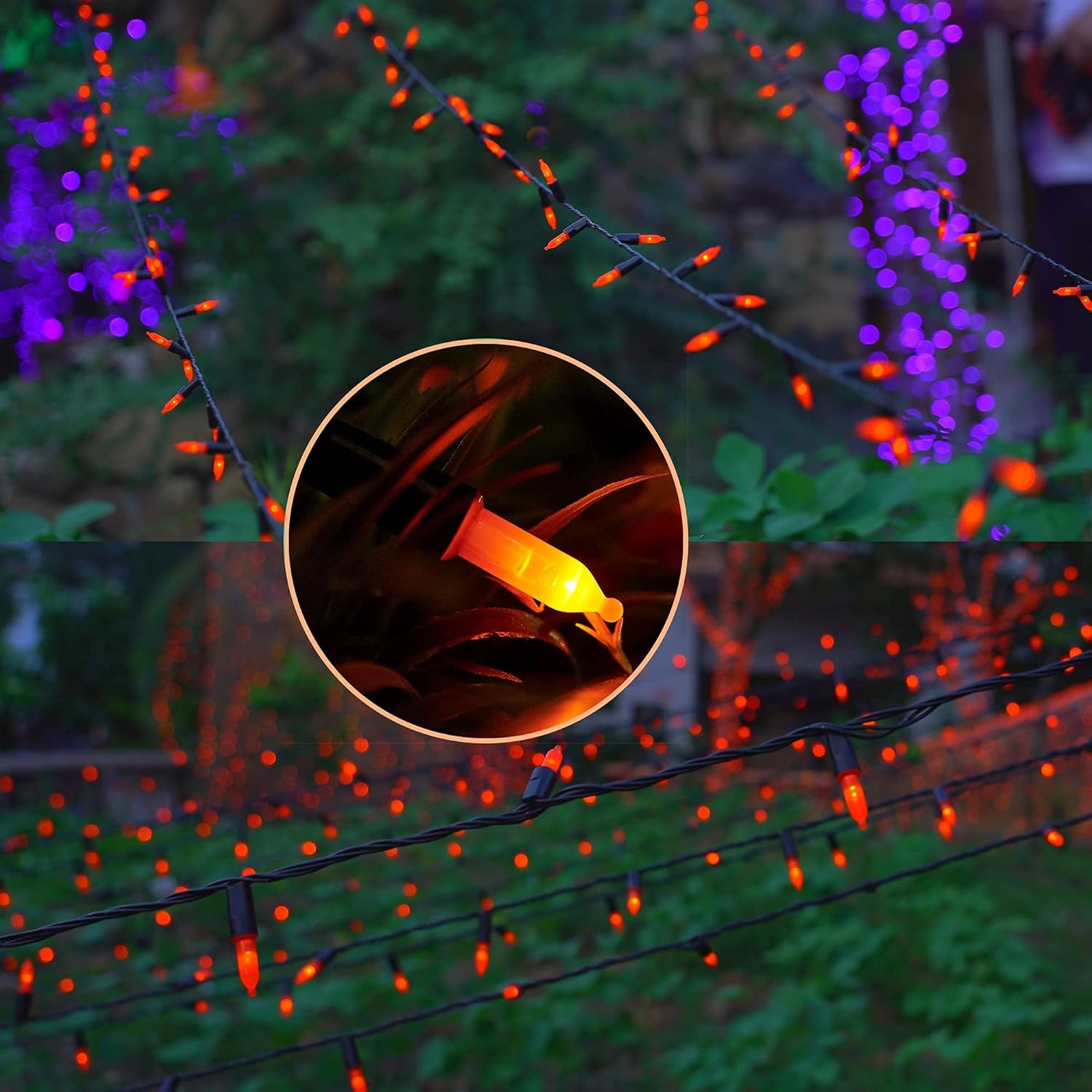 • [8 Lighting Modes]: Halloween orange range mini string light has 8 lighting modes for you to choose - Combination, In waves, Sequential, Slow Glow, Chasing/Flash, Slow fade, Twinkle/Flash, Steady on. Adjust the lighting modes by pressing the round button on the battery box.