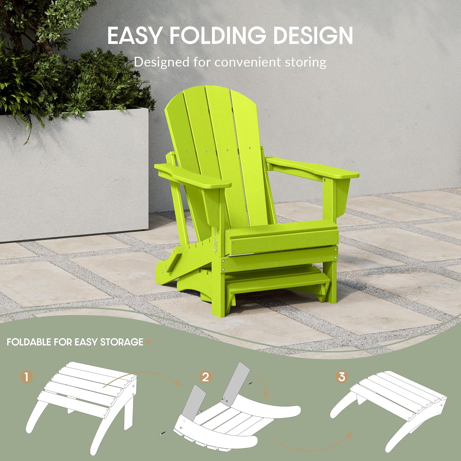 WestinTrends Outdoor Ottoman, Patio Adirondack Ottoman Foot Rest, All Weather Poly Lumber Folding Foot Stool for Adirondack Chair, Widely Used for Outside Porch Pool Lawn Backyard, Lime