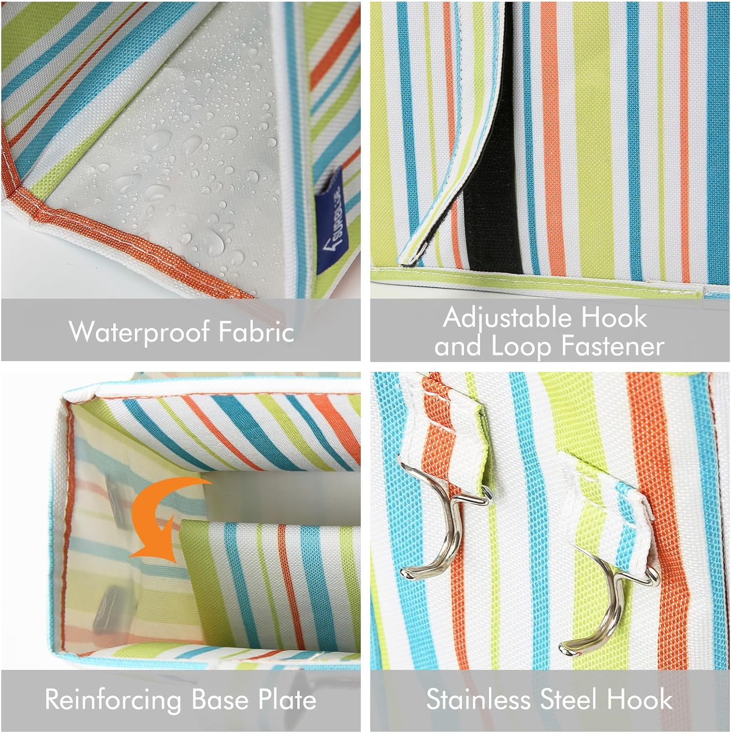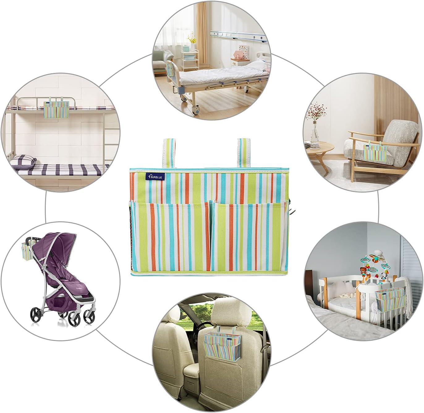 Surblue Bedside Caddy Hanging Bed Organizer Storage Bag Pocket for Bunk and Hospital Beds, College Dorm Rooms Baby Bed Rails,Wheelchair Side Bag,Camp Chiars,4 Pockets and 2 Hooks (Small GreenStripe)