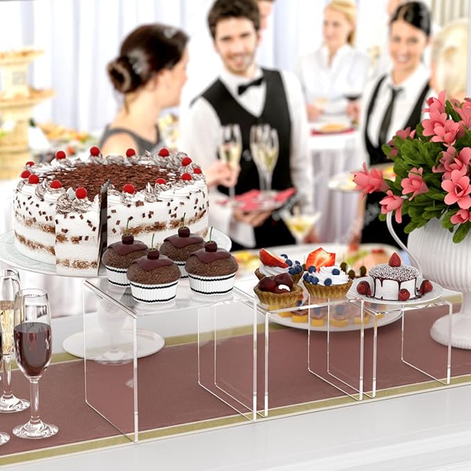 • DYNAMIC FLOATING EFFECT- Each display riser stand is made of super clear acrylic plexiglass, which is almost invisible and you can enjoy the visual effect of items floating in the air. The crystal clear acrylic display racks work nicely for home party, wedding and birthday celebration, which can decorate your treats table and make the table more appealing for the events by showing cakes, desserts, candies, snacks and plants etc.