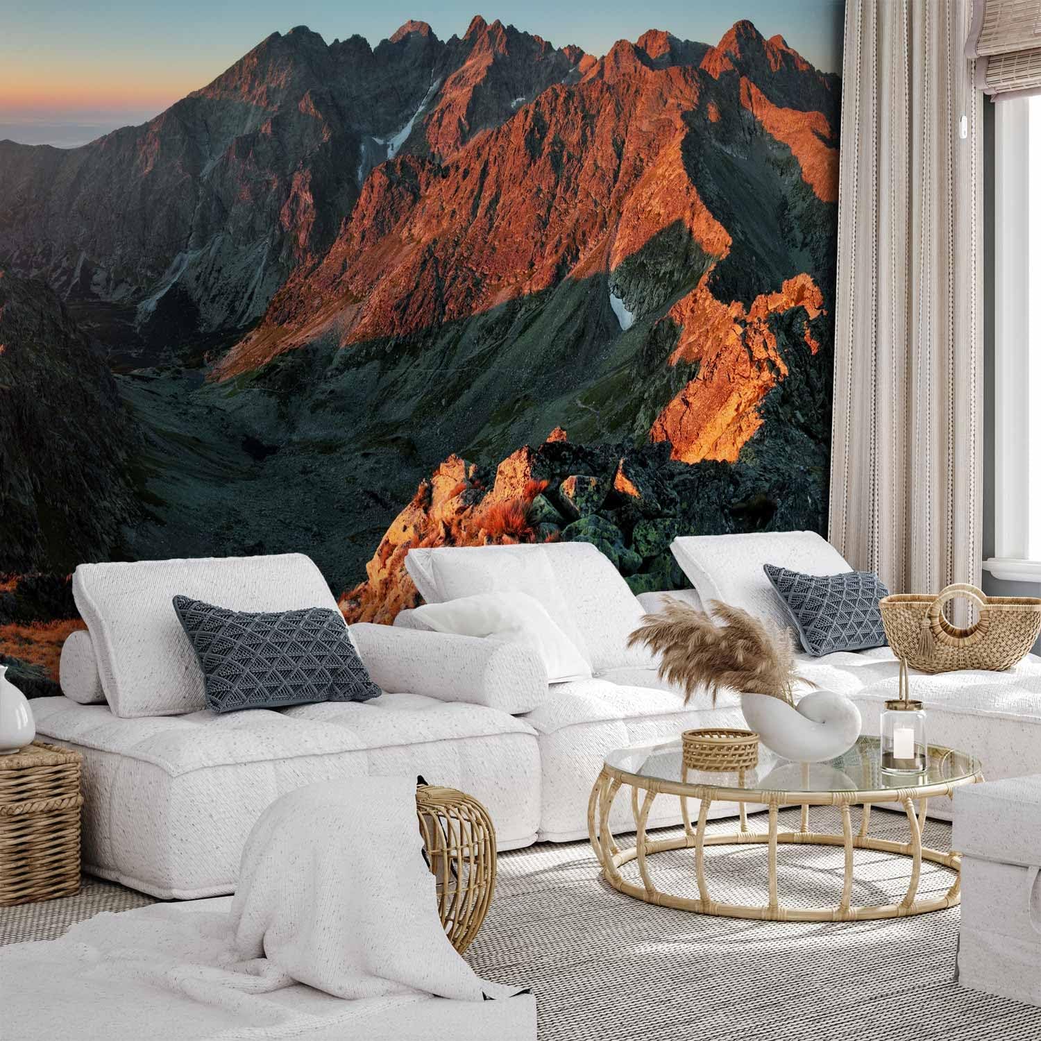 artgeist Wall Mural Peel and Stick Landscape 212x98 in - XXL Self-Adhesive Corner Wallpaper Removable Large Sticker Foil Angle Wallpaper Wall Decor Print Sun Nature Mountains c-B-0471-a-a