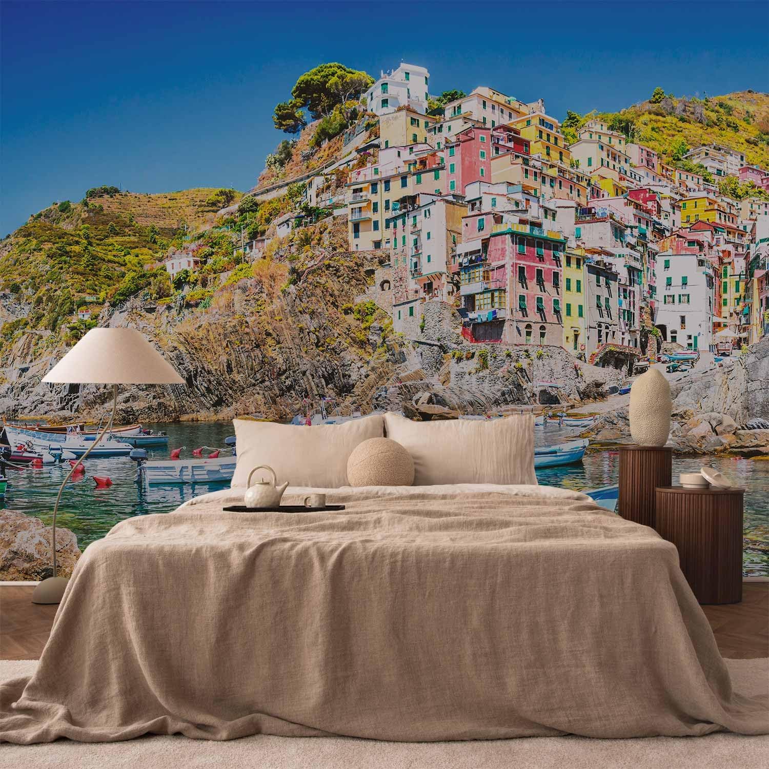 artgeist Wall Mural Peel and Stick Architecture 212x98 in - XXL Self-Adhesive Corner Wallpaper Removable Large Sticker Foil Angle Wallpaper Wall Decor Print City Sea Boat Like Painted d-B-0296-a-a
