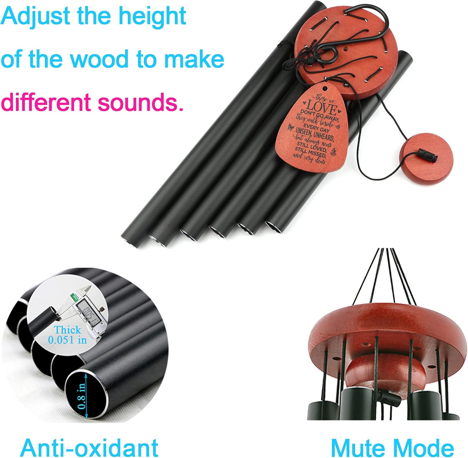 • Premium Quality Memorial Wind Chimes: Made with high-quality aluminum tubes and a corrosion-resistant black anodized finish, these memorial wind chimes produce clear, beautiful tones. The bell holder, striker, and wind catcher are made from durable beech wood, and the entire structure is supported by a strong, weather-resistant nylon cord for lasting outdoor use