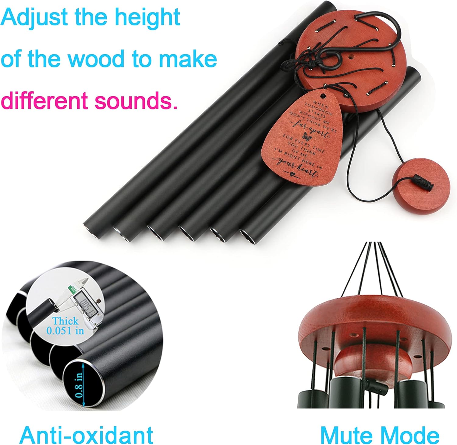 • Premium Quality Memorial Wind Chimes: Made with high-quality aluminum tubes and a corrosion-resistant black anodized finish, these memorial wind chimes produce clear, beautiful tones. The bell holder, striker, and wind catcher are made from durable beech wood, and the entire structure is supported by a strong, weather-resistant nylon cord for lasting outdoor use